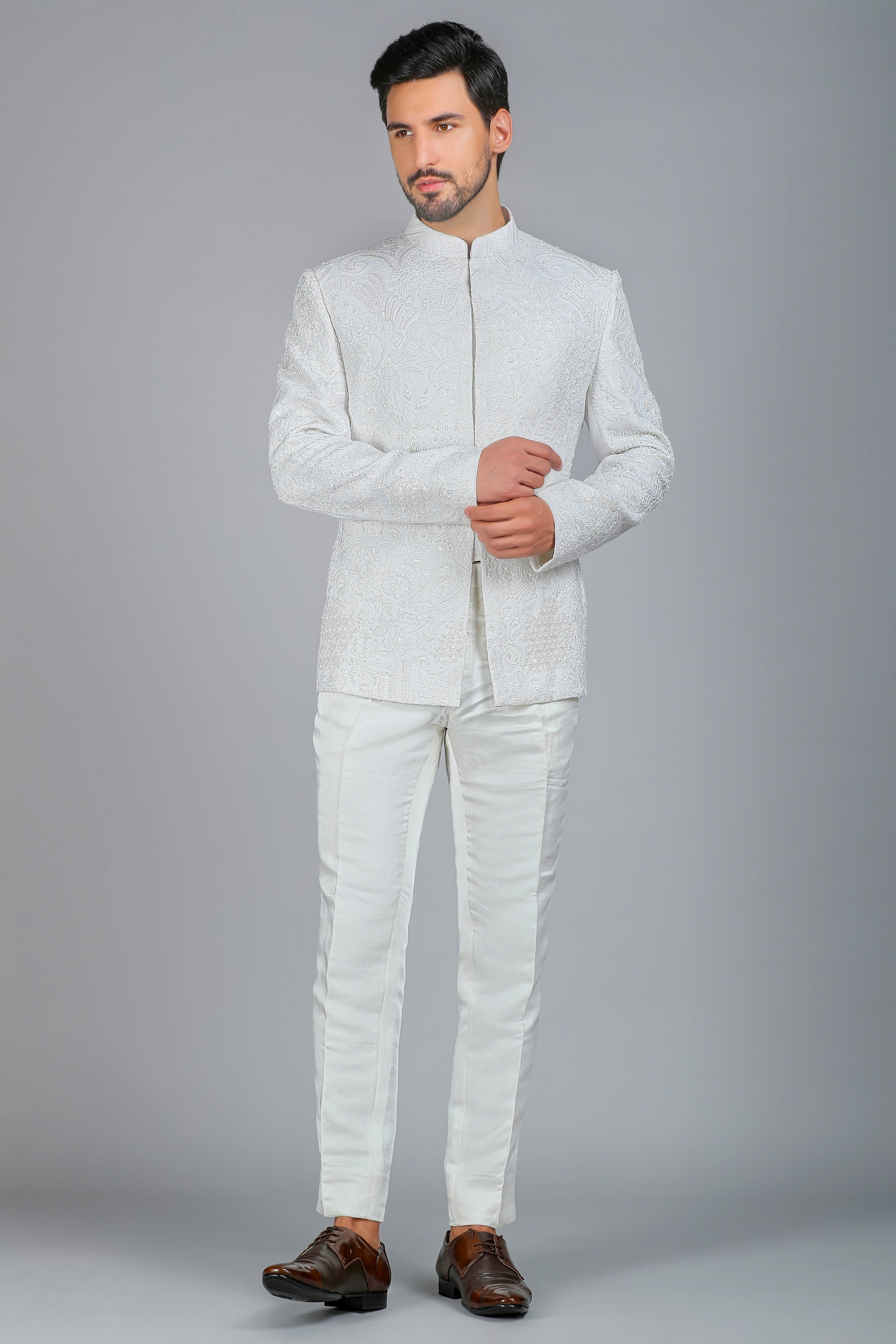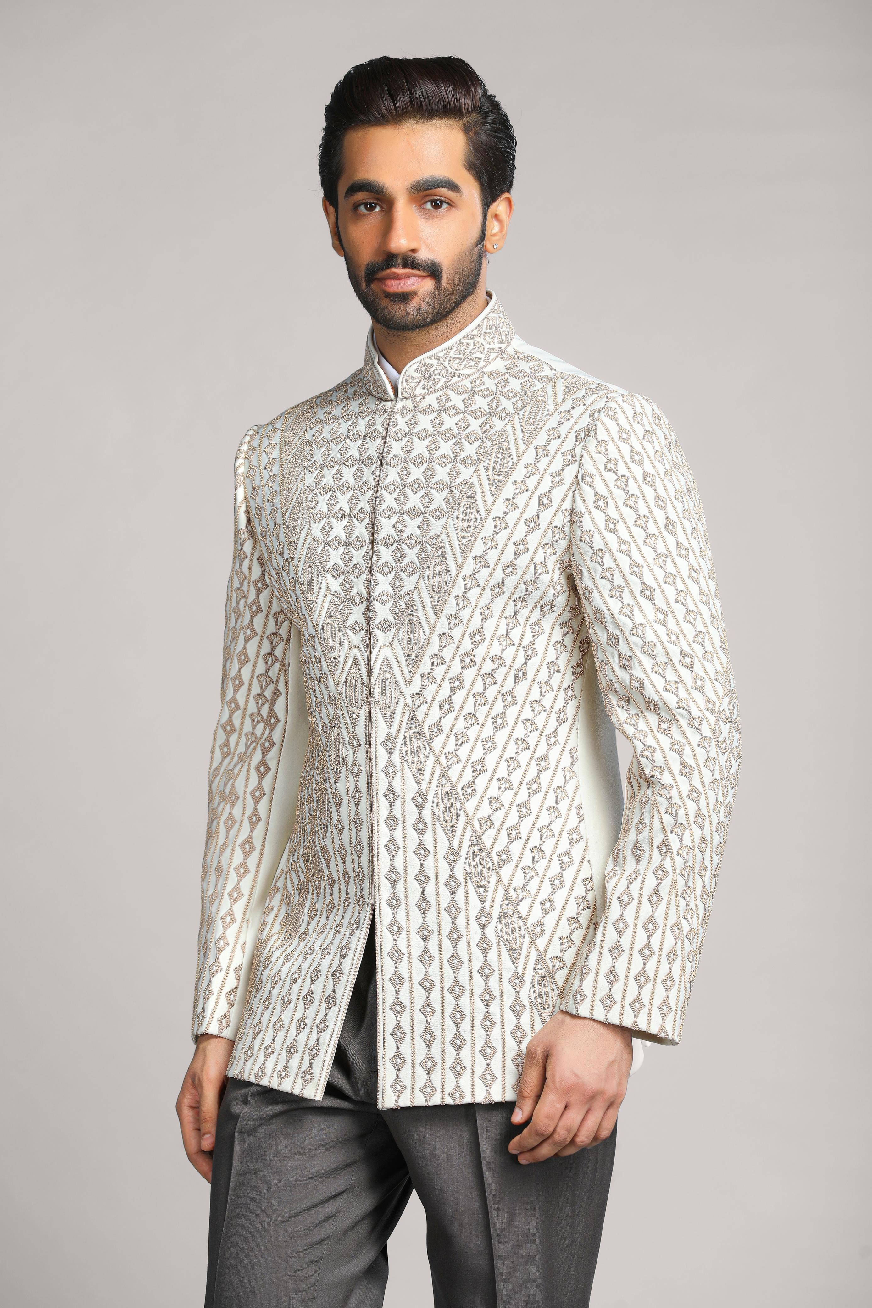 Nothing says fashion more than a stylish bandhgala for the modern groom. This suit style does not only pride one from the majority but tells a story of rich heritage in menswear Indian. Regardless of whether you opt for luxurious fabrics like velvet or brocade, or even a more subtle palette of linen or silk, the bandhgala is essentially a canvas. Many grooms prefer intricate embroidery or embroidered buttons that add a dash of royalty to their ensemble. A fashionable bandhgala for the modern groom combines traditional looks with modern fashion sensibilities so you look your absolute best on your wedding day.