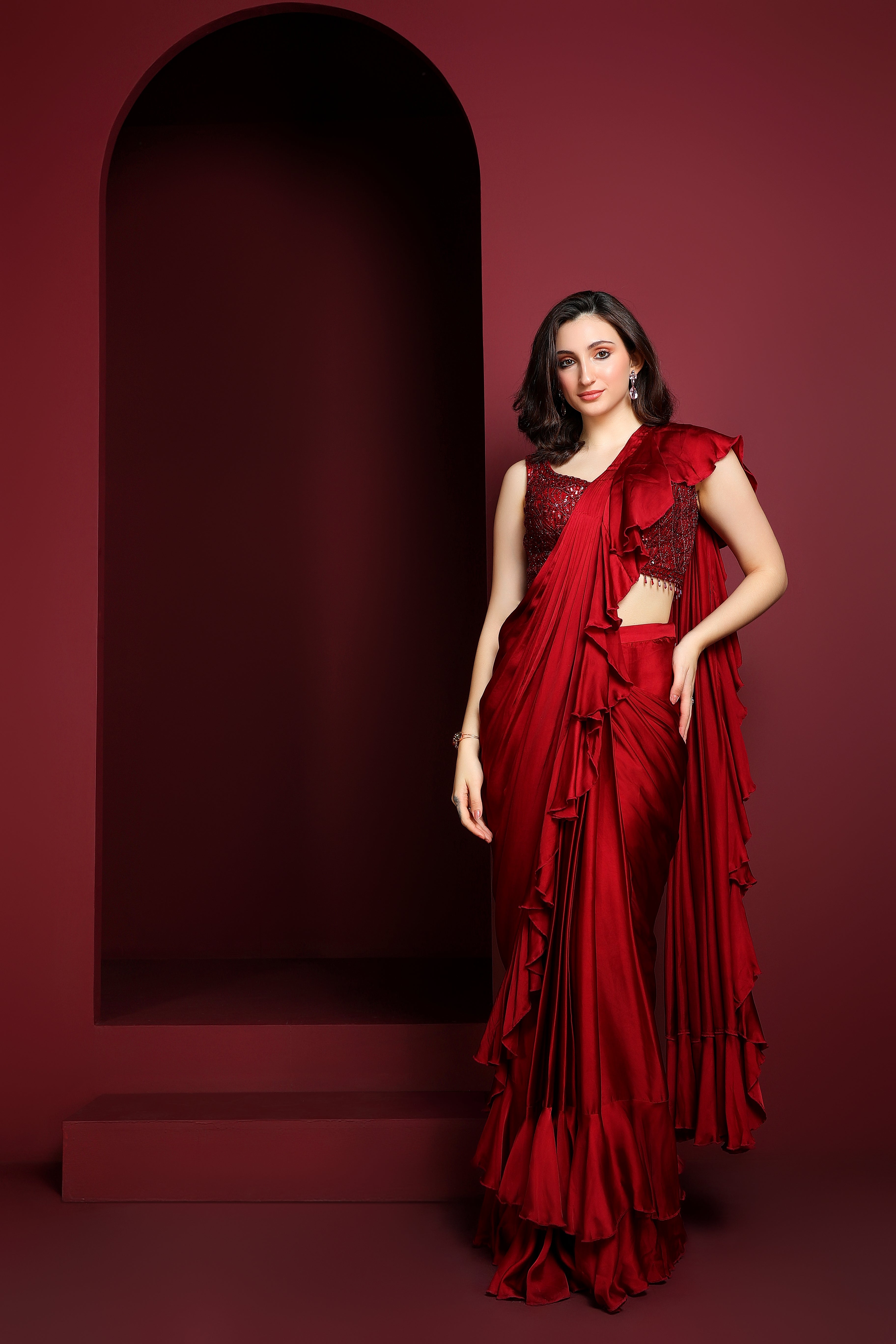 The beauty of the saree lies in its versatility, but traditionally draping it can sometimes feel like a daunting task, especially for women who are constantly on the go. Whether you’re a professional, a busy mother, or someone new to wearing sarees, the hassle of perfect pleats can take away from the joy of the attire. That’s why pre-draped sarees have taken the fashion world by storm. Offering the same regal appearance without the struggle, these sarees come with the pleats and pallu already stitched, allowing you to slip into them in minutes while maintaining the quintessential elegance.