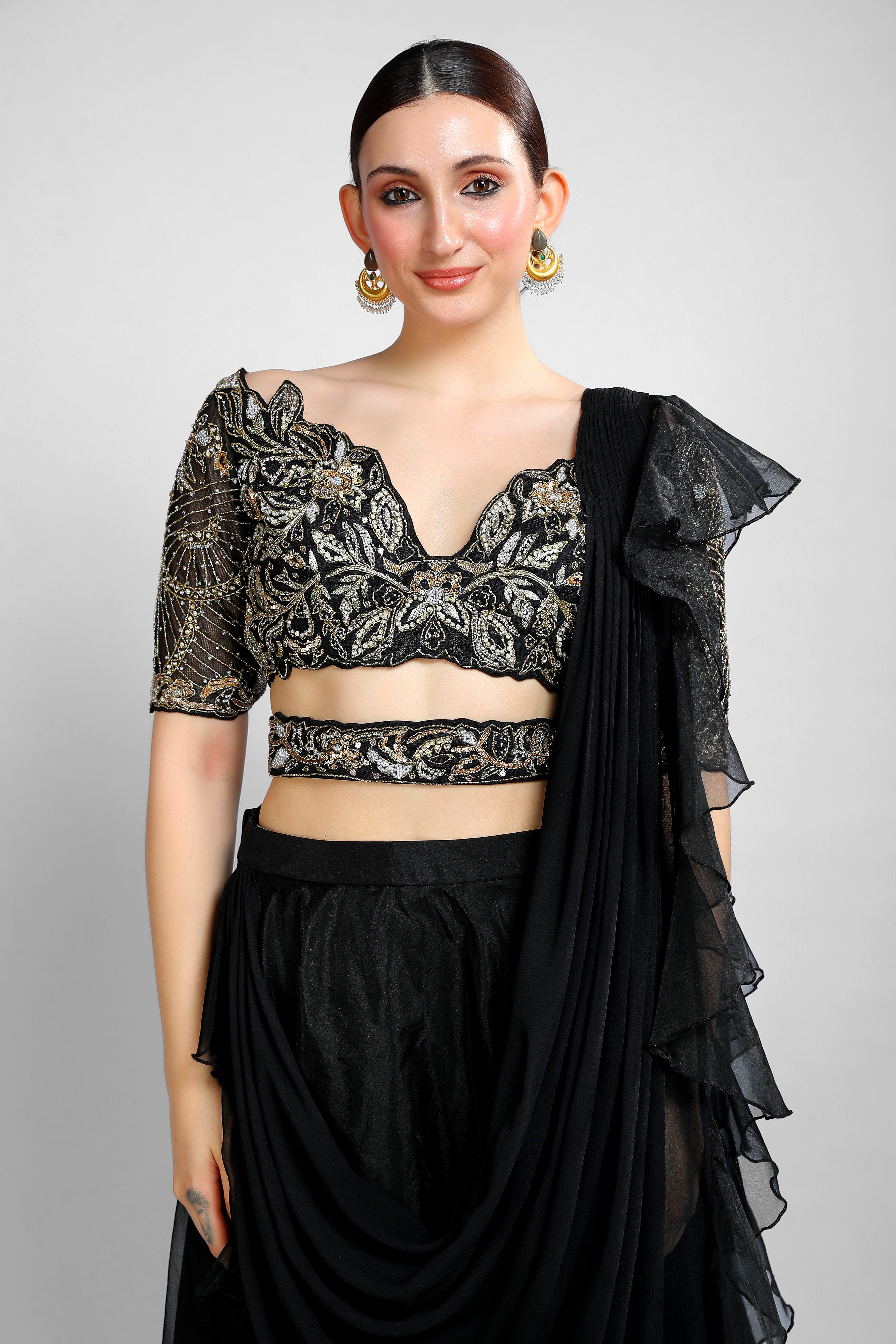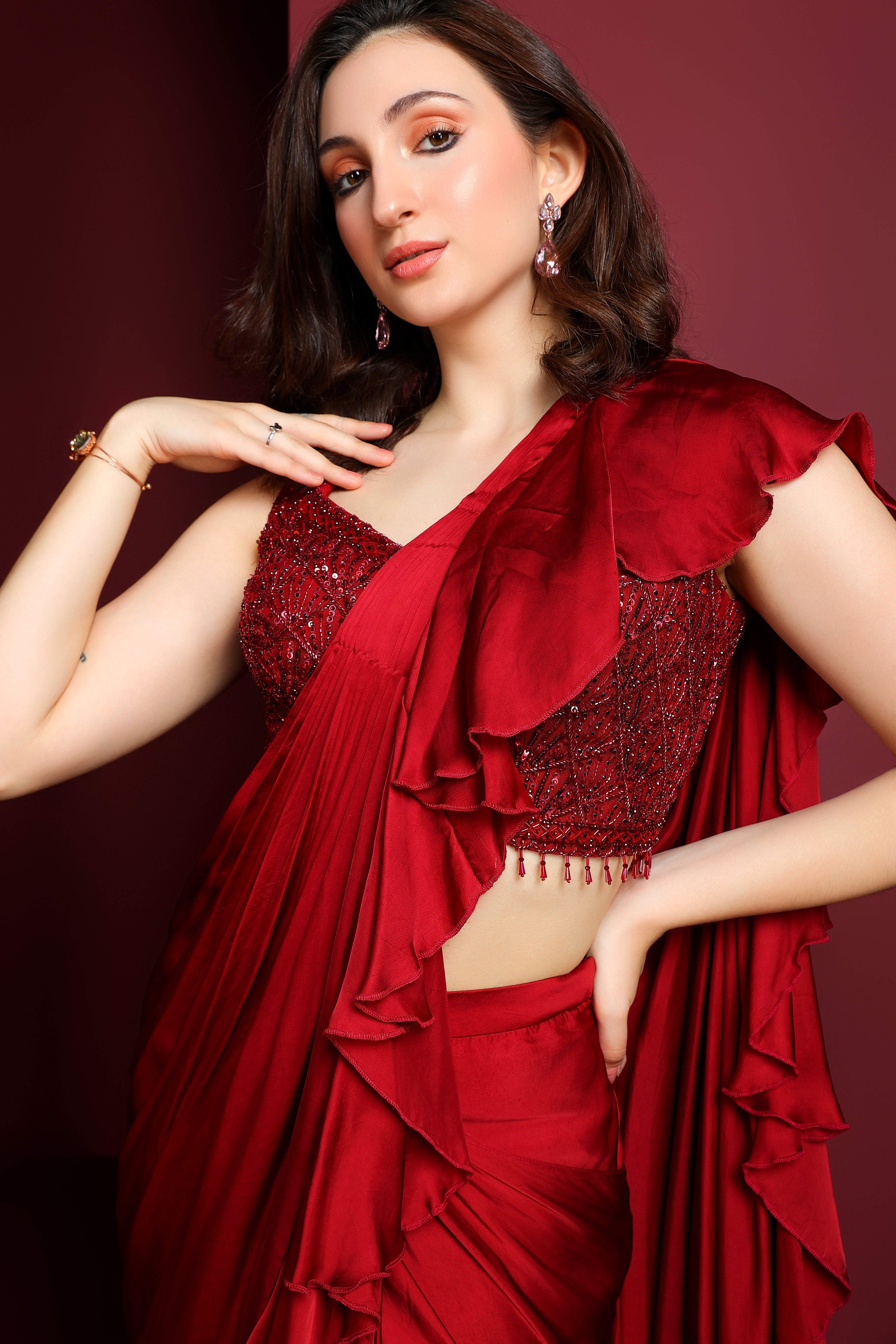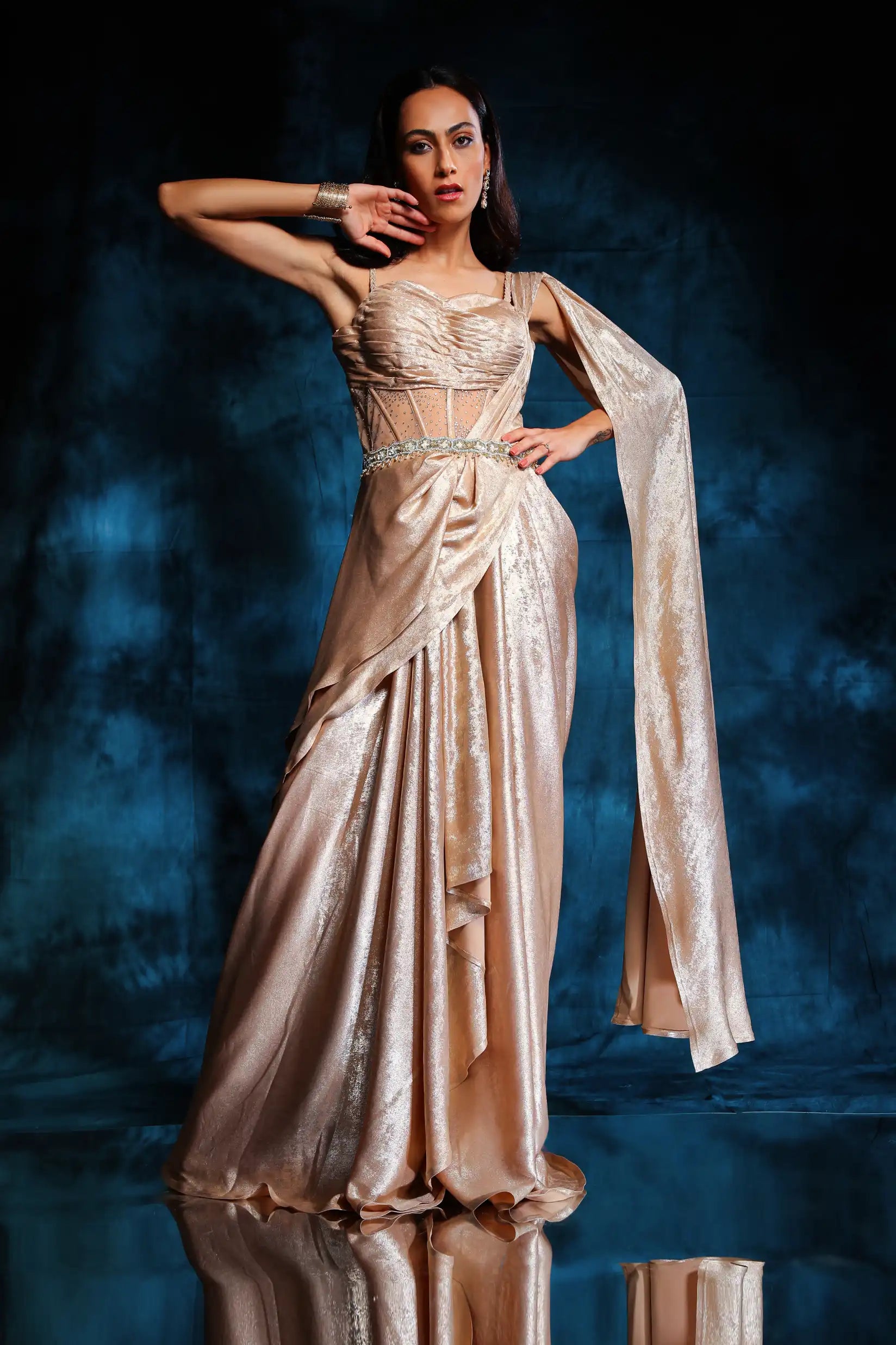 Imagine attending a festive event, wedding, or even a work function in a saree that requires no prior knowledge of draping. Our ready-to-wear draped sarees make this possible. These sarees come pre-stitched, allowing you to wear them just like a gown. With perfect pleats and flowing pallu in place, you can achieve the same allure and elegance with none of the effort.