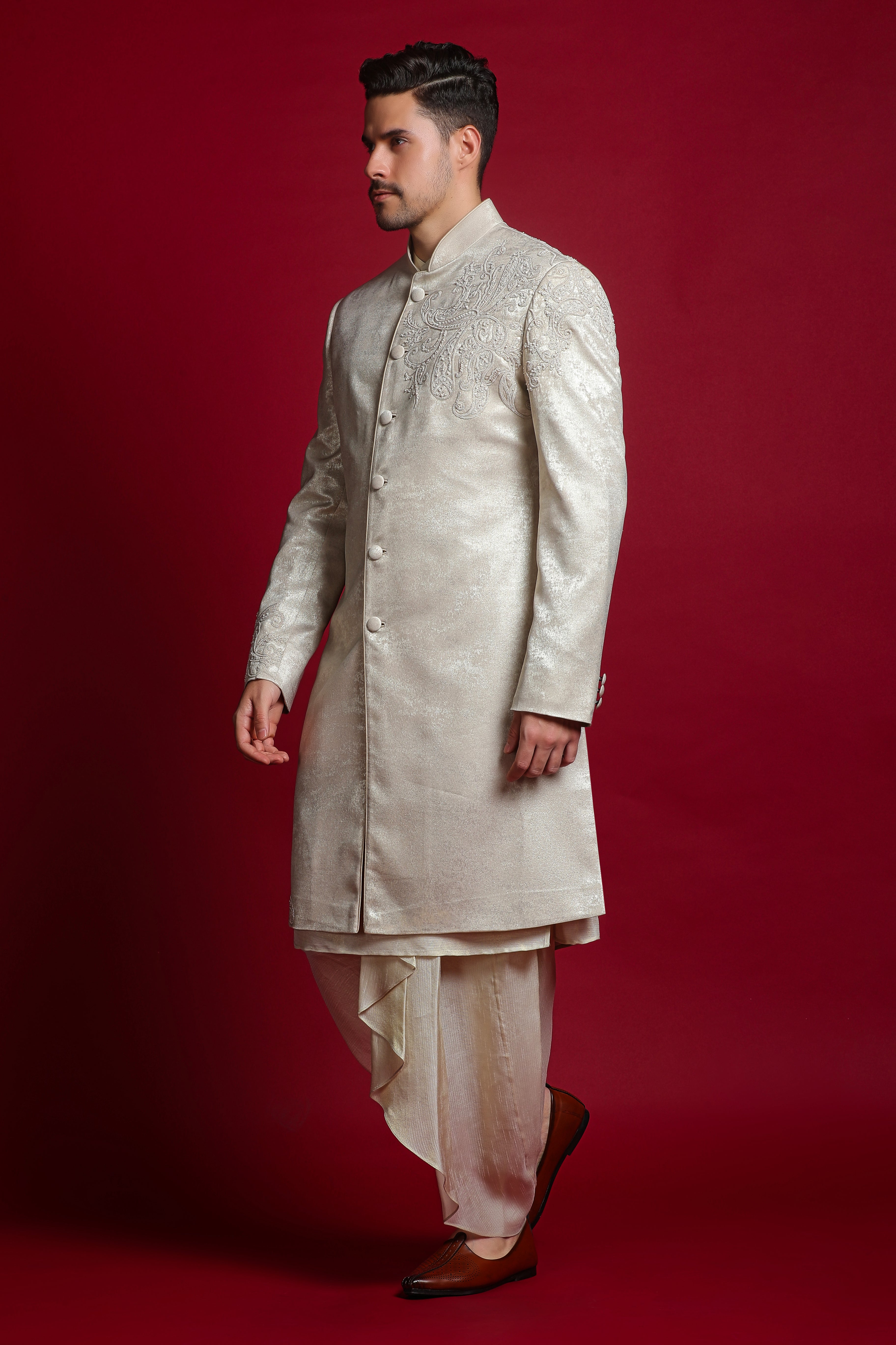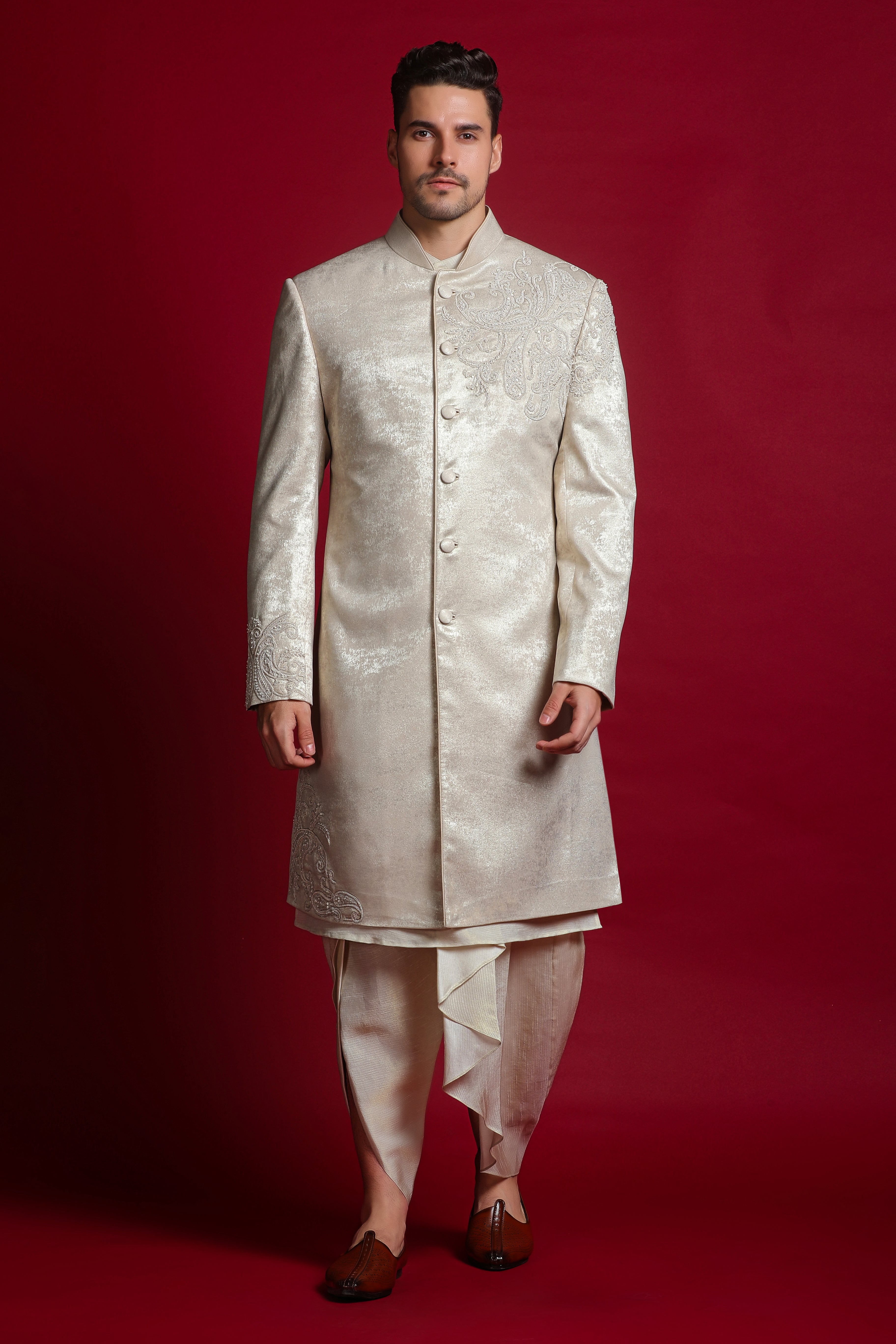 Summer weddings and events require stylish clothing that is both strikingly beautiful and comfortable for hot seasons. The mens summer indo western dresses are crafted for you to continue being cool yet dashing. Constructed with light fabrics, including linen, cotton, and silk blends, these outfits will surely get you ready for warm sunny days. With intricately embroidered designs and modern cuts, they help you stay comfortable without compromising your fashion.