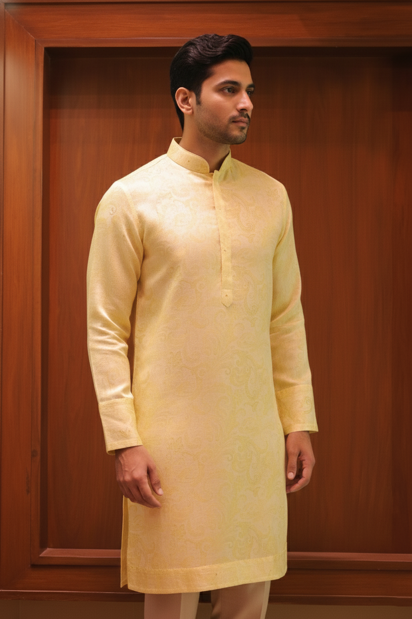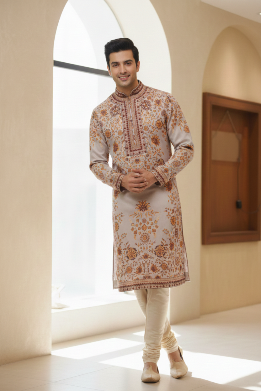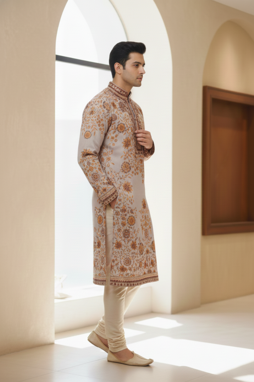 Majestic Ivory Golden Handcrafted Sherwani Set