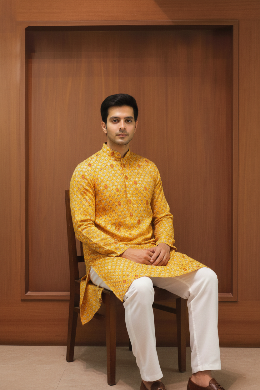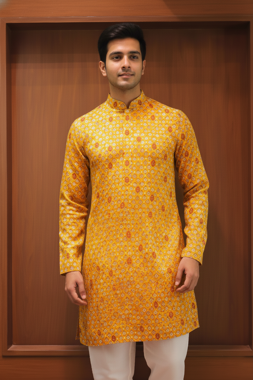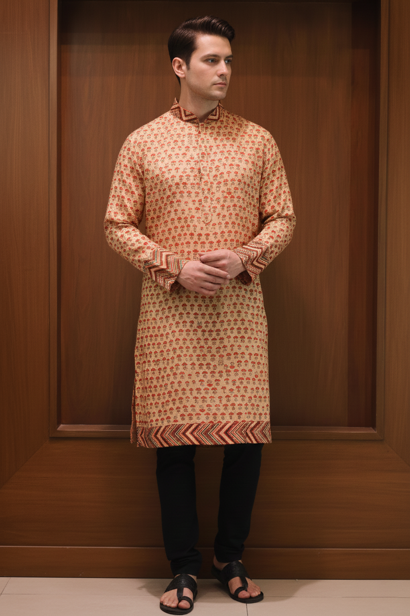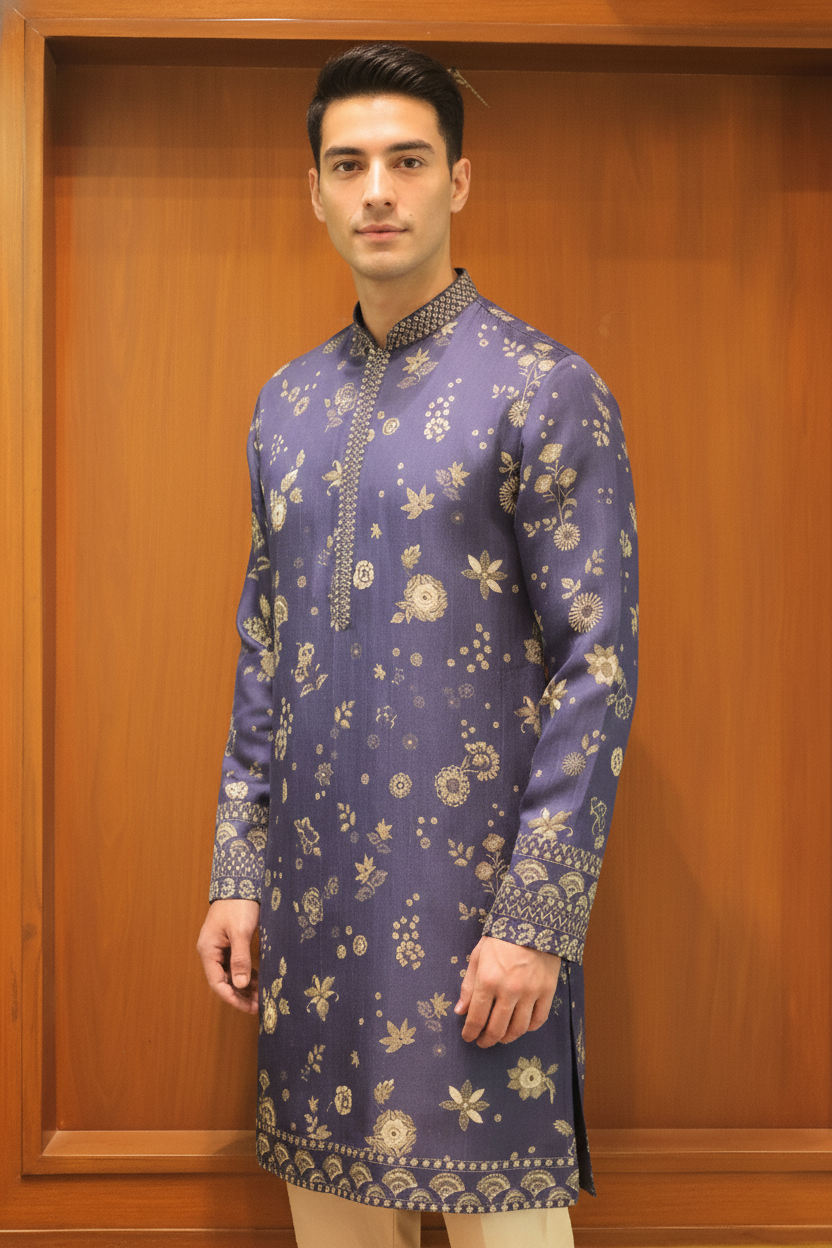 Majestic Ivory Golden Handcrafted Sherwani Set