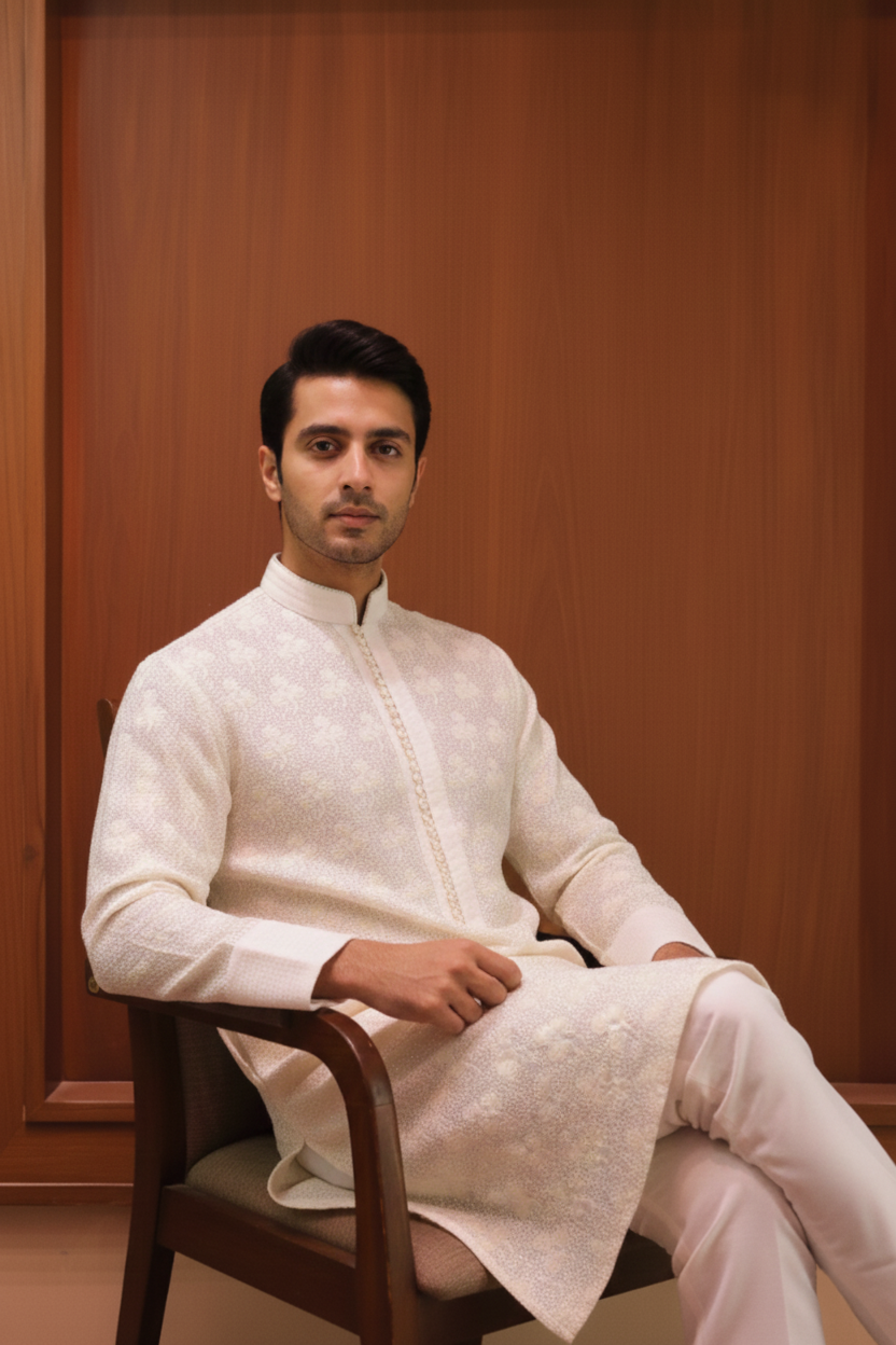 Celestial Ivory Aari and Zardozi Sherwani Set