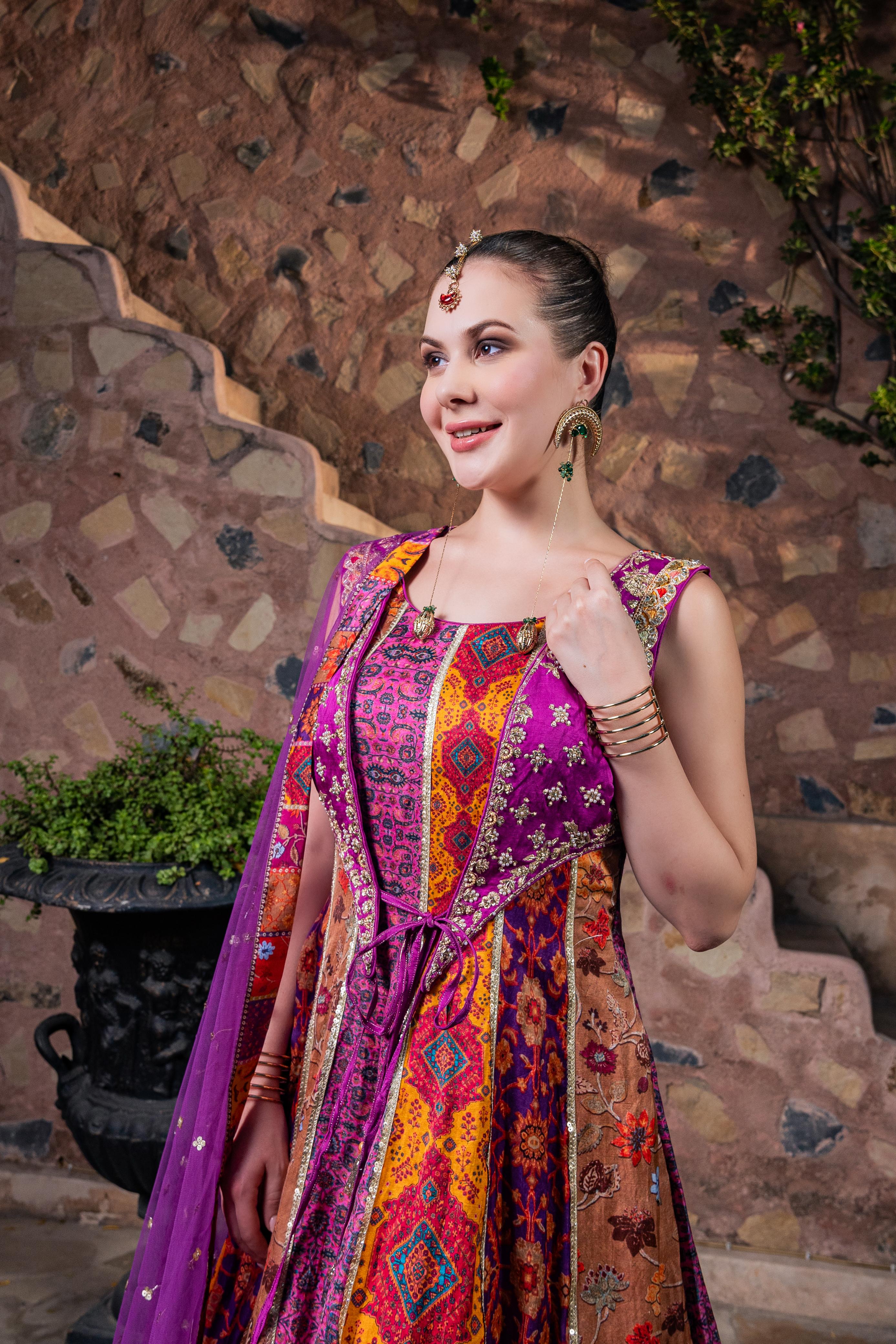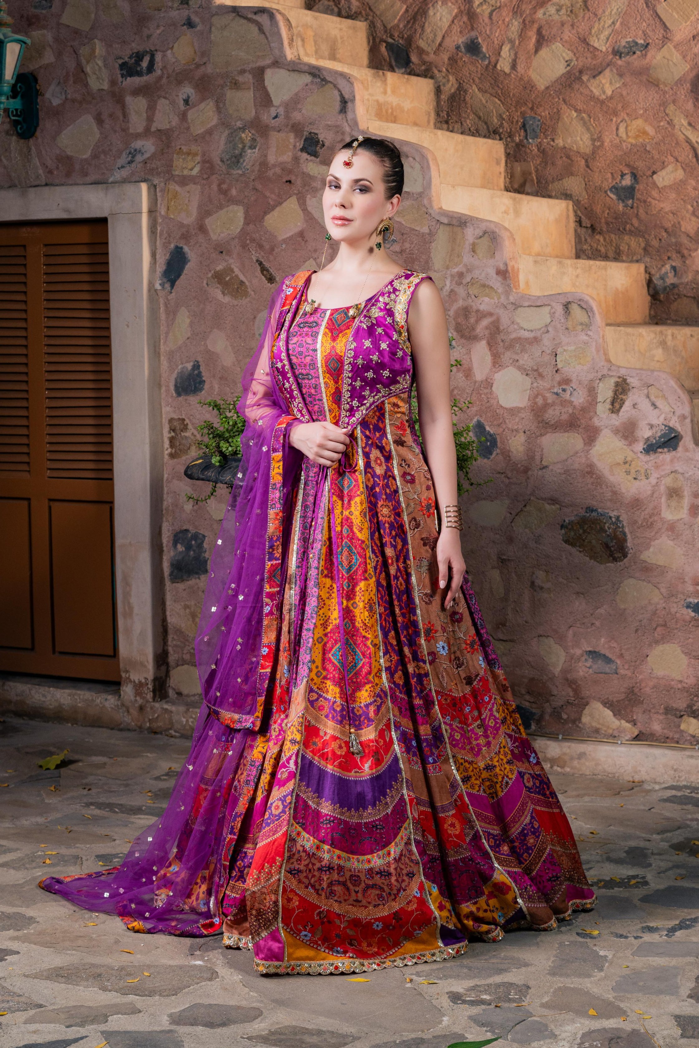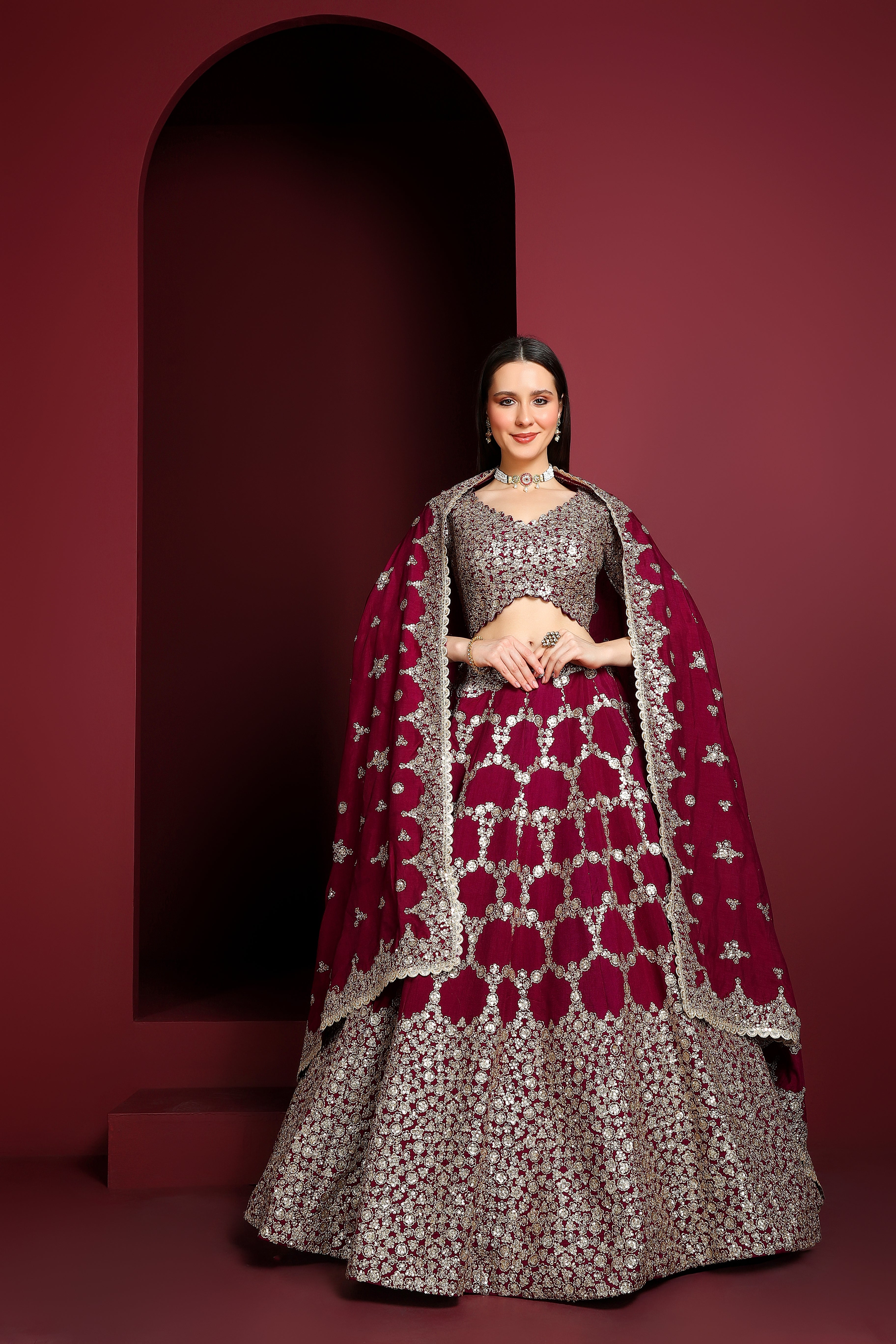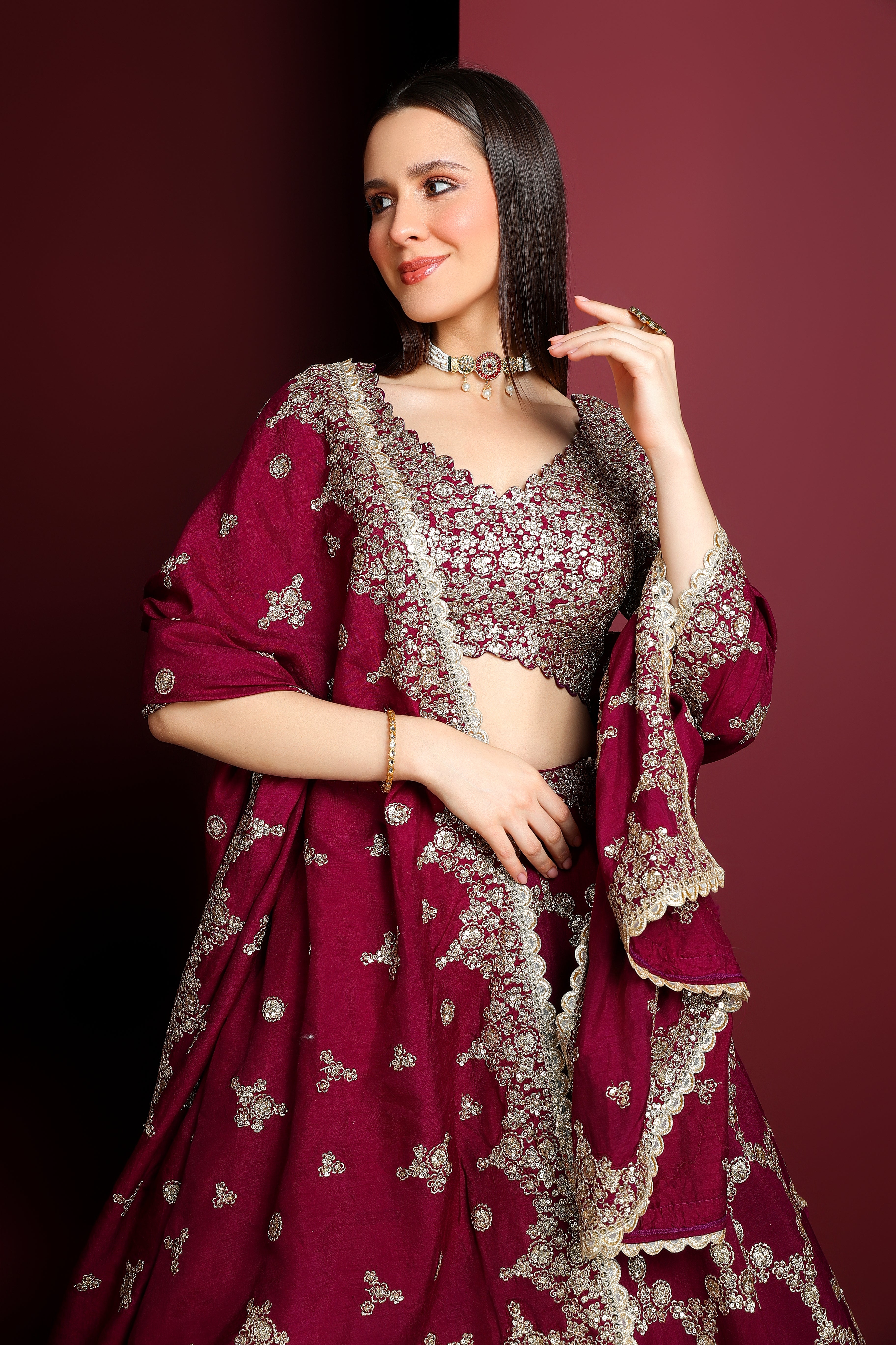Shahana Noor Wine Shimmer Embroidered Lehenga