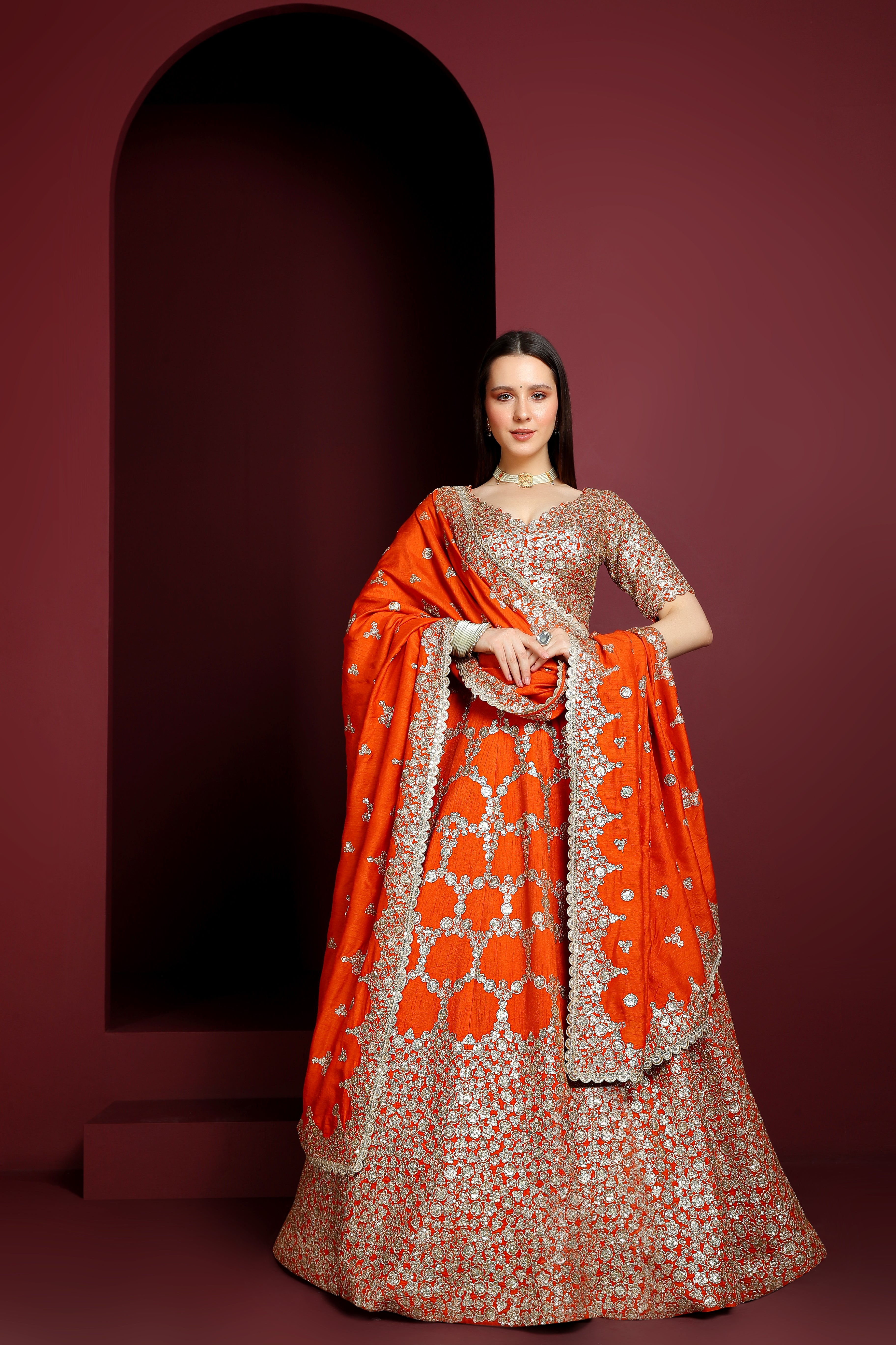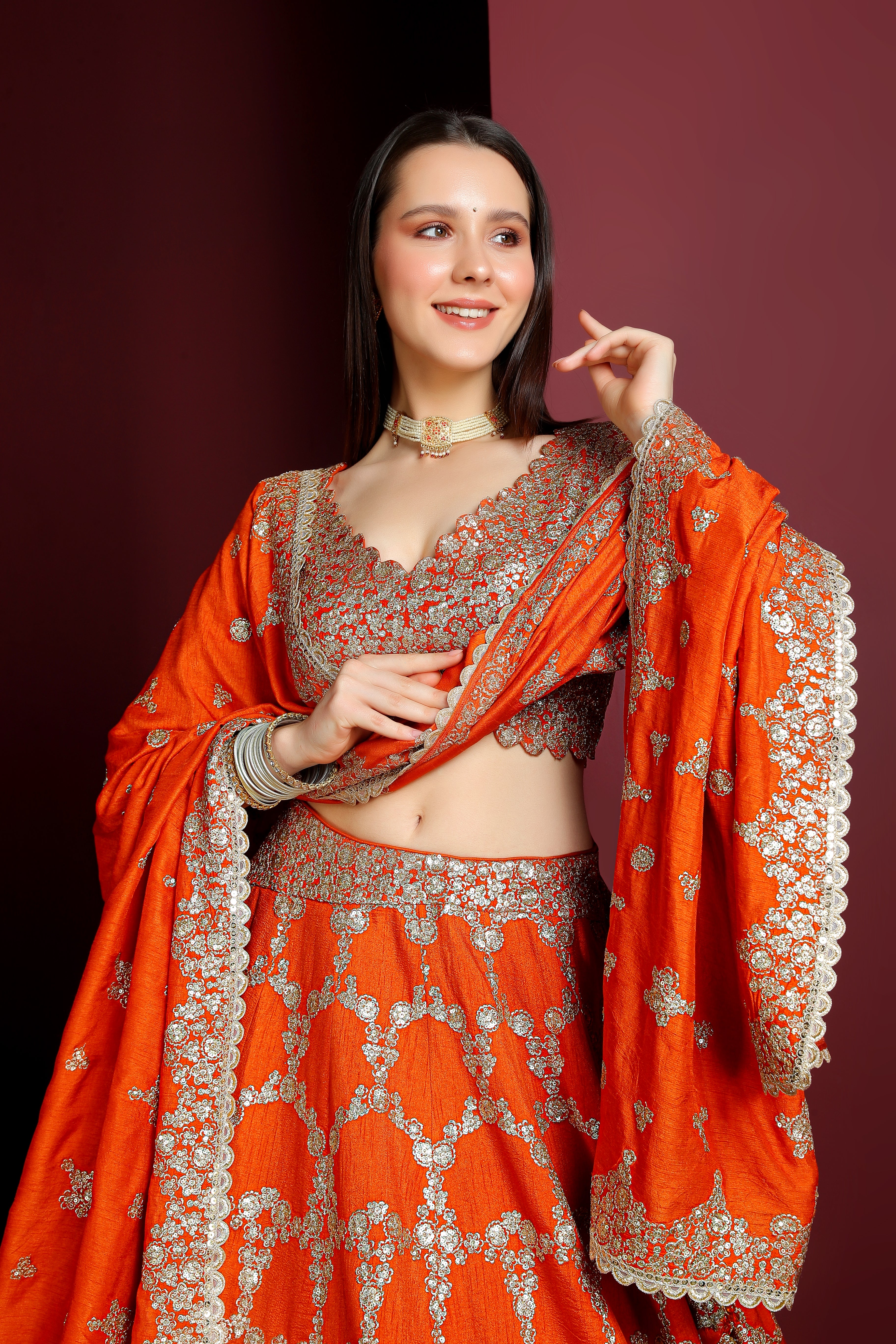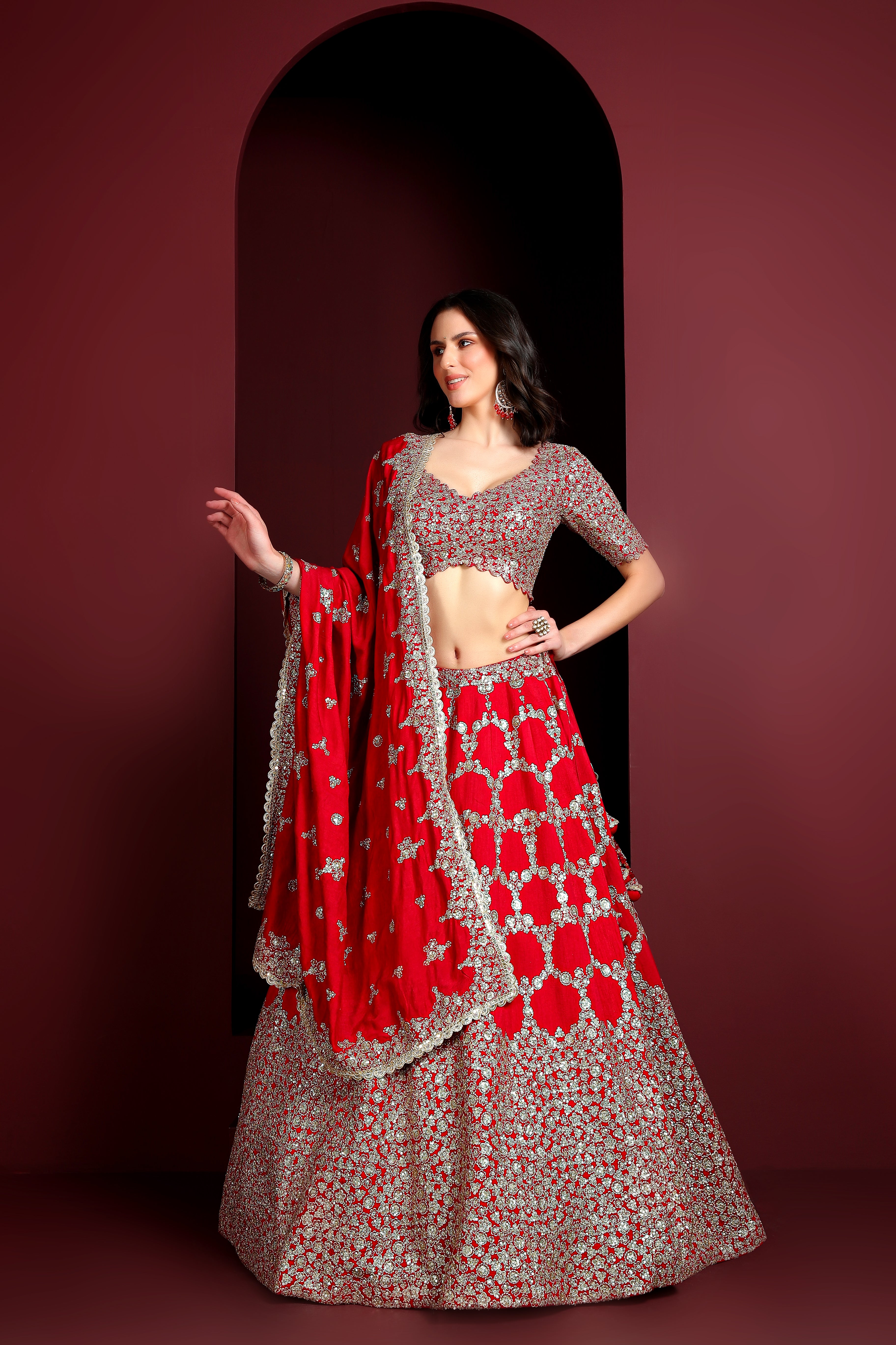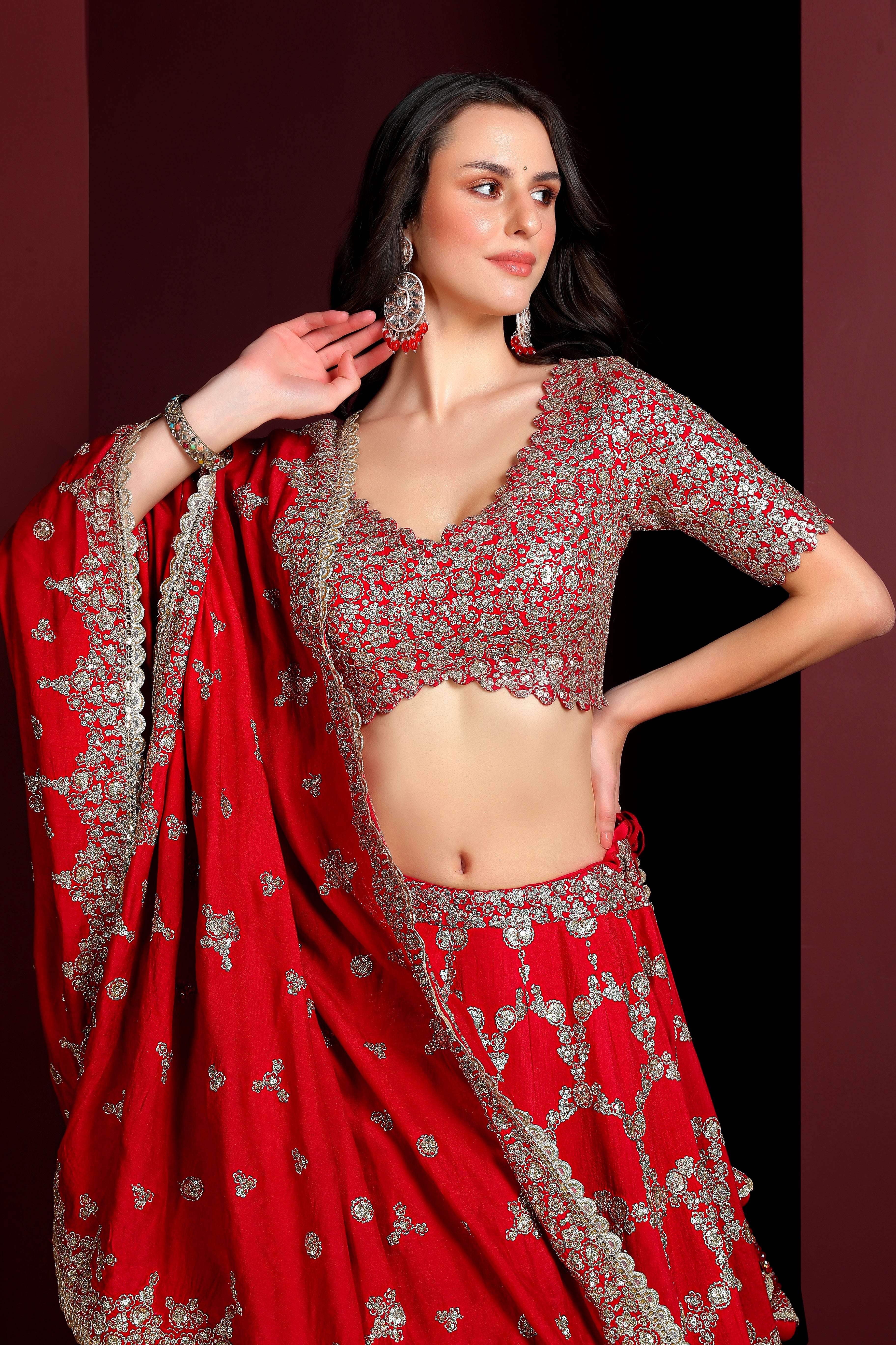 Shahana Noor Crimson Shimmer Embroidered Lehenga