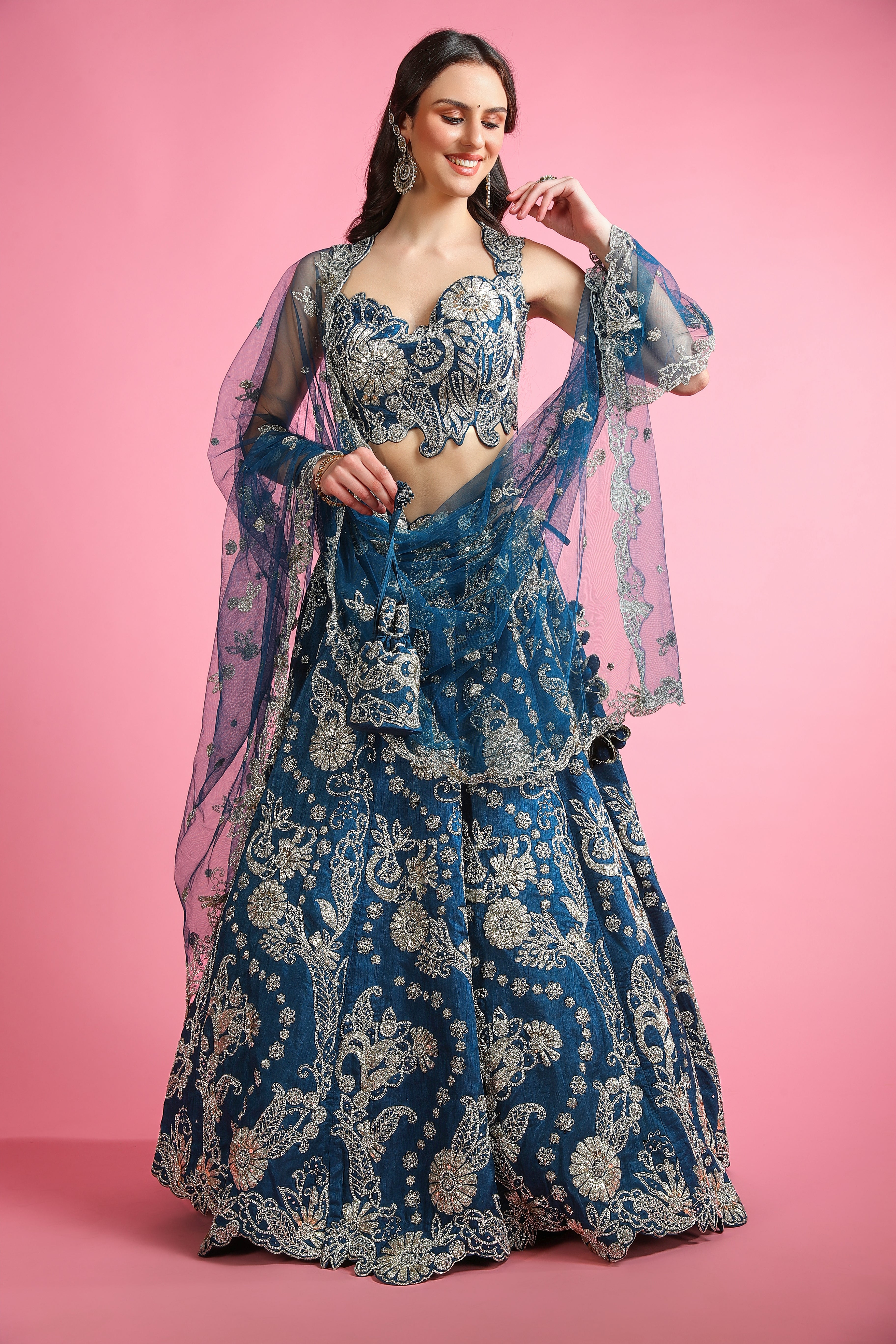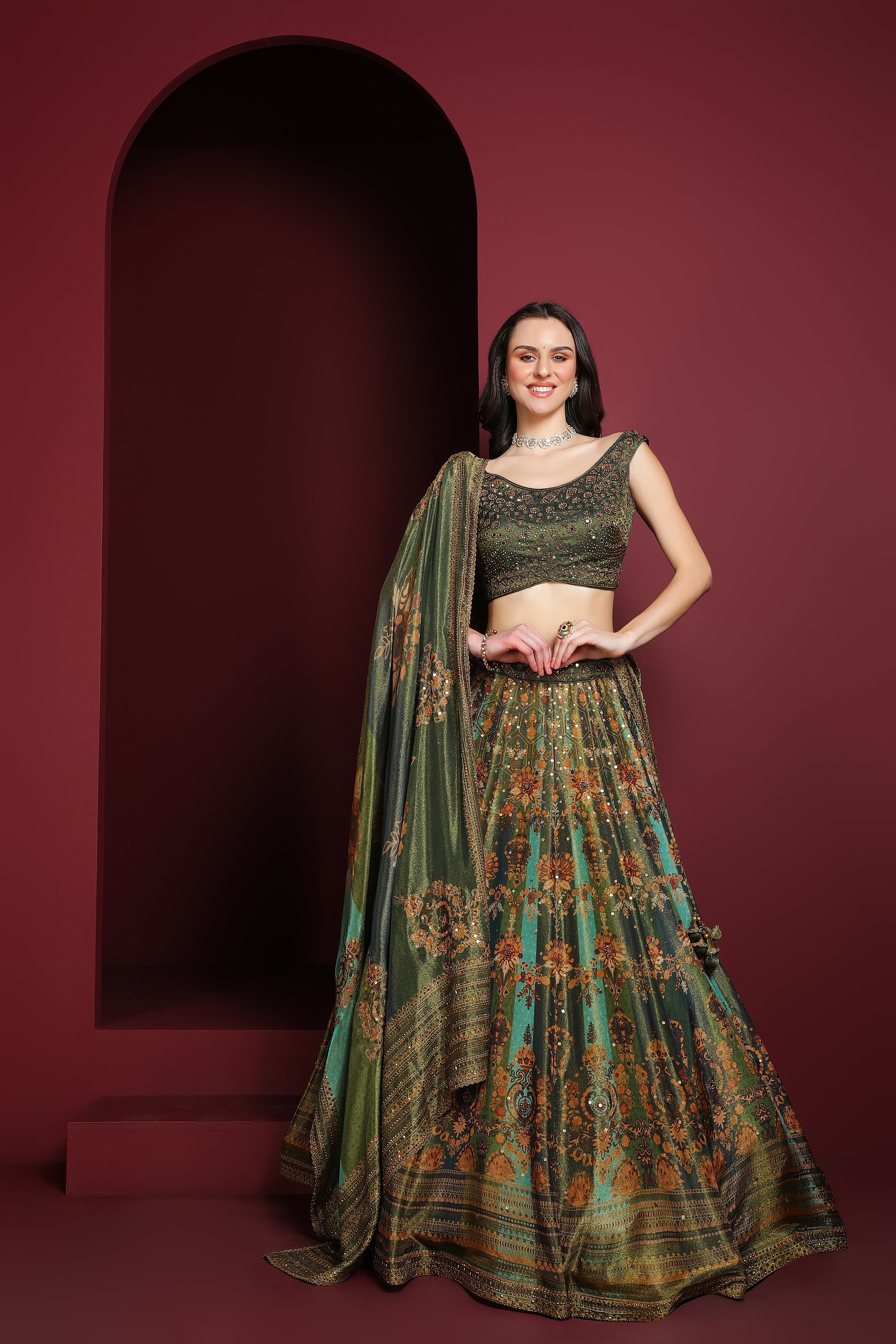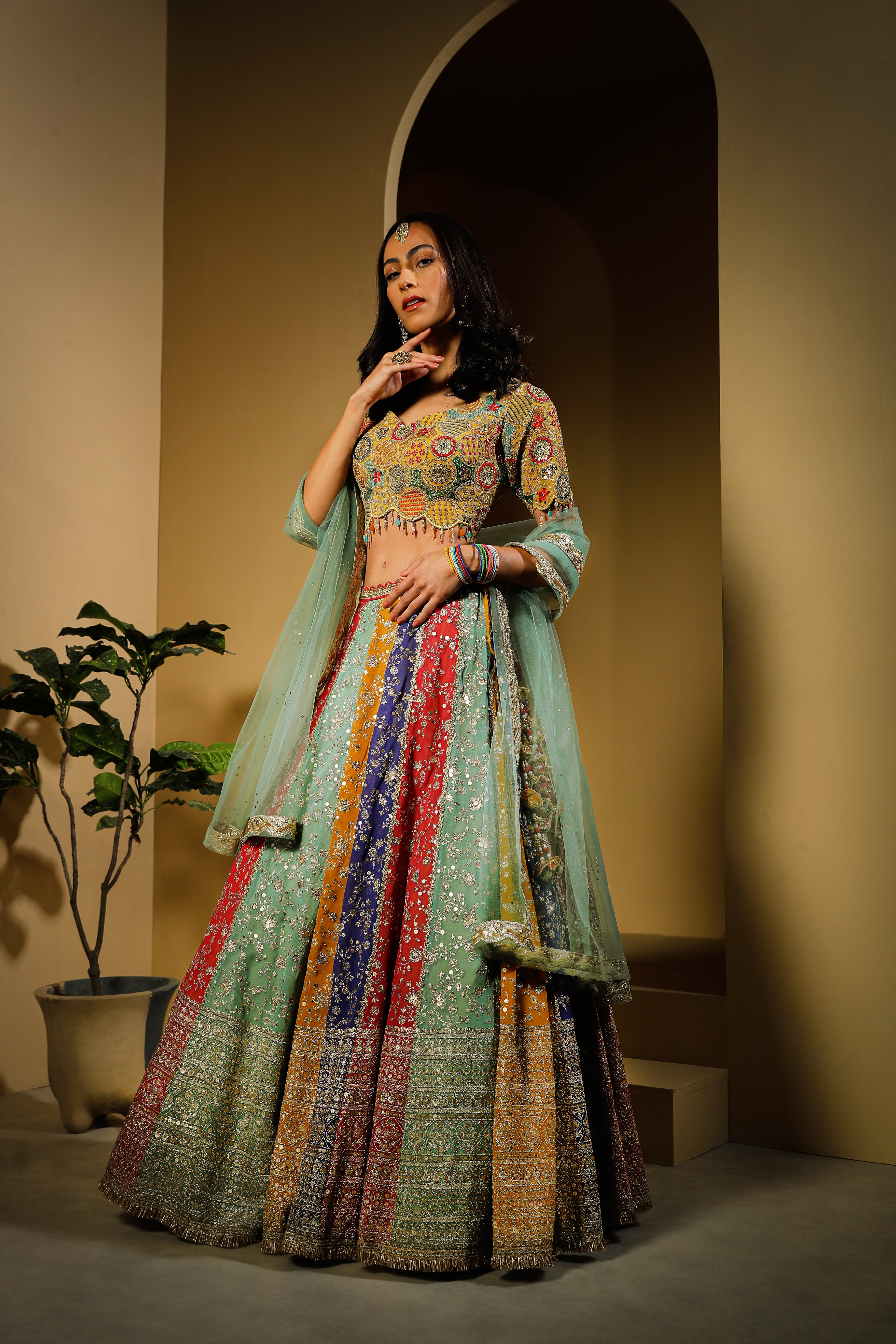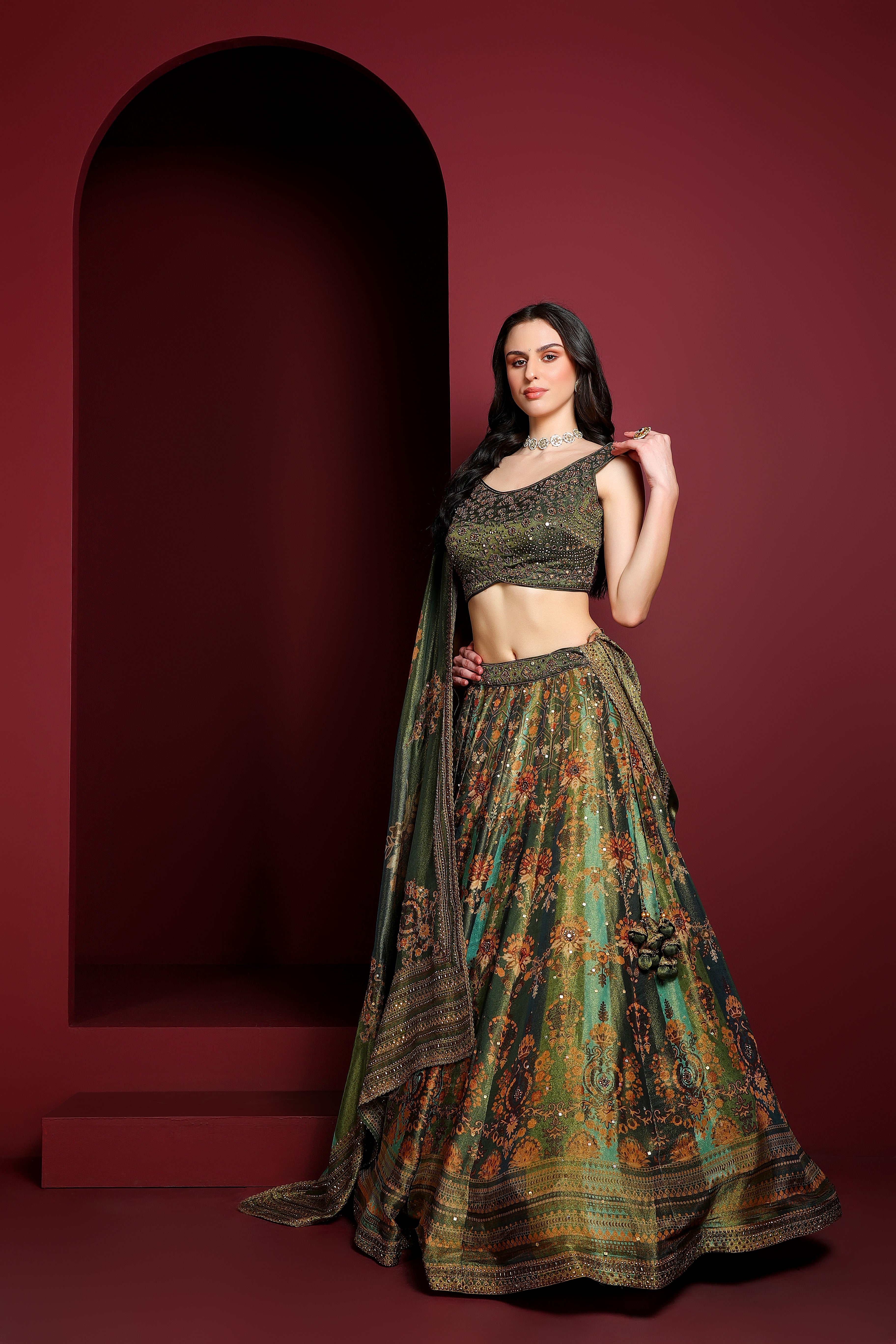 Prismatic Floral Printed Hand-Embroidered Lehenga