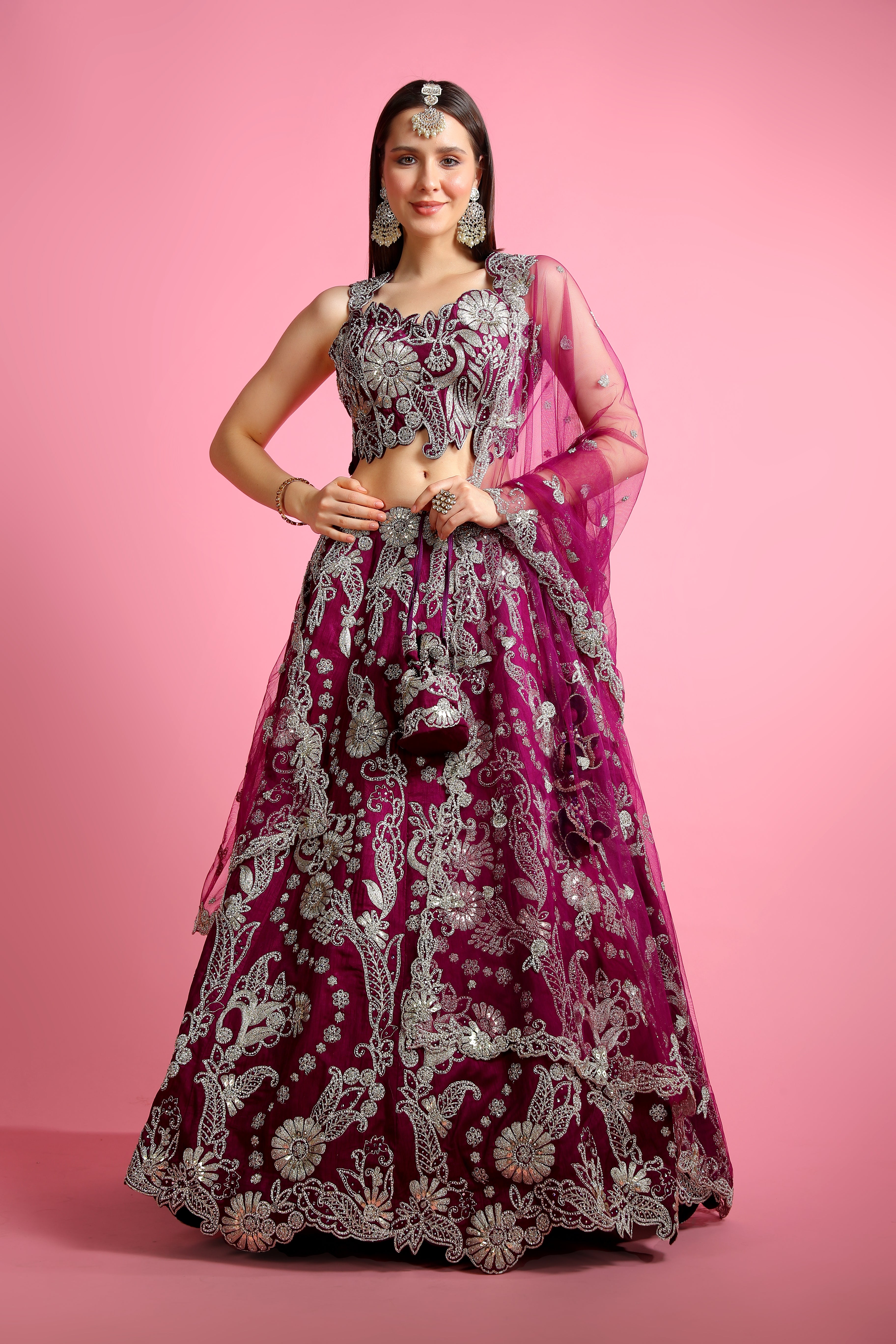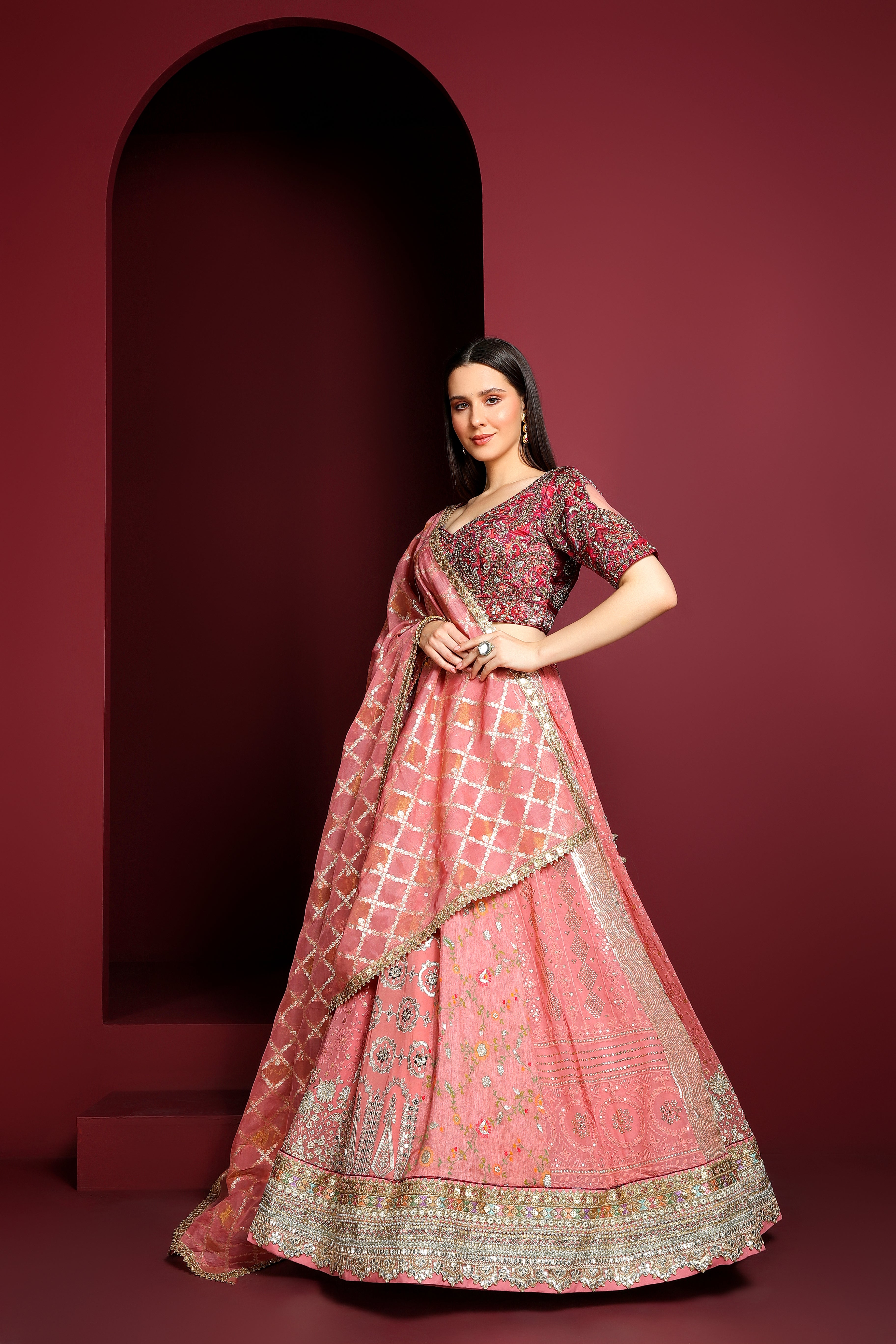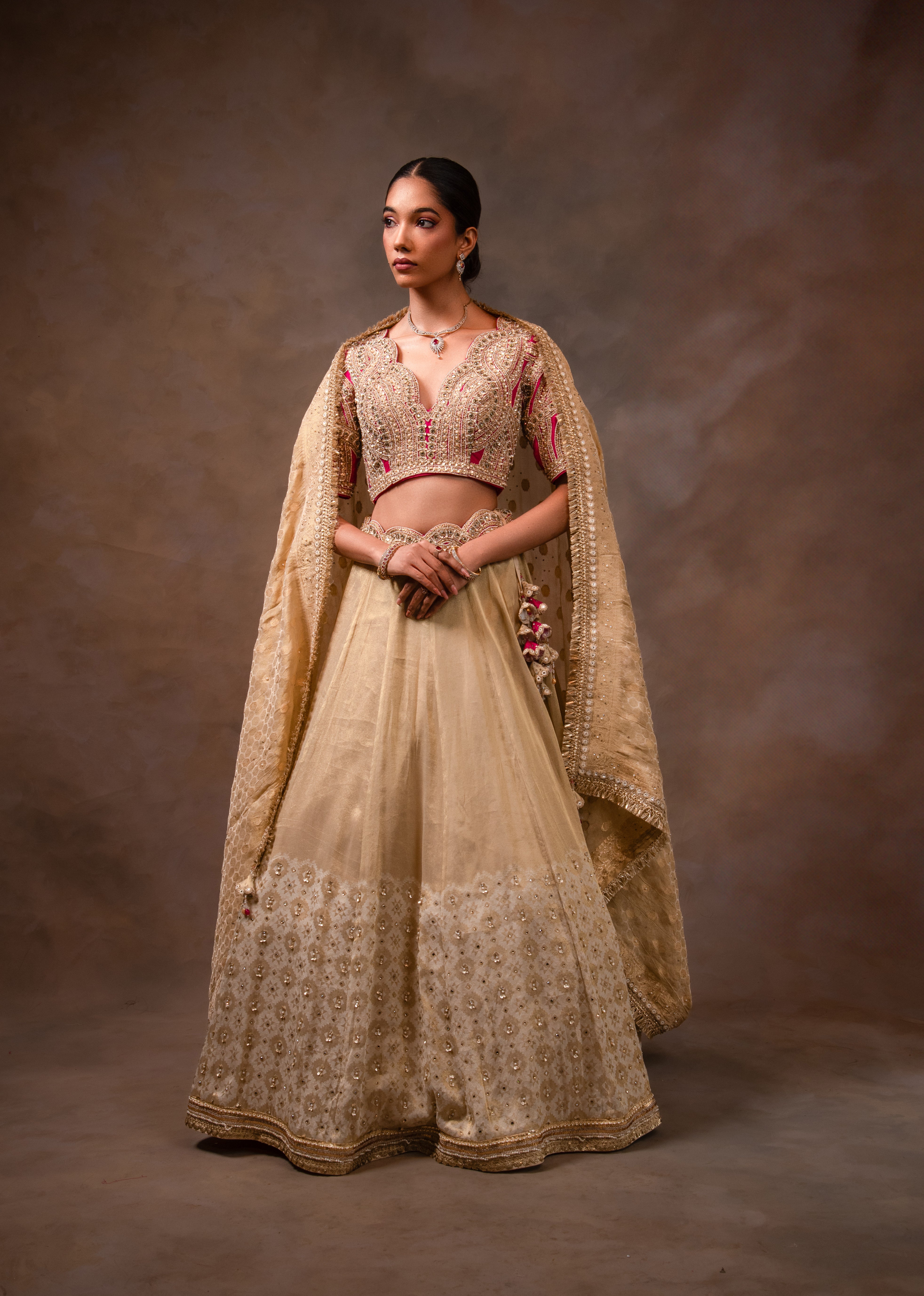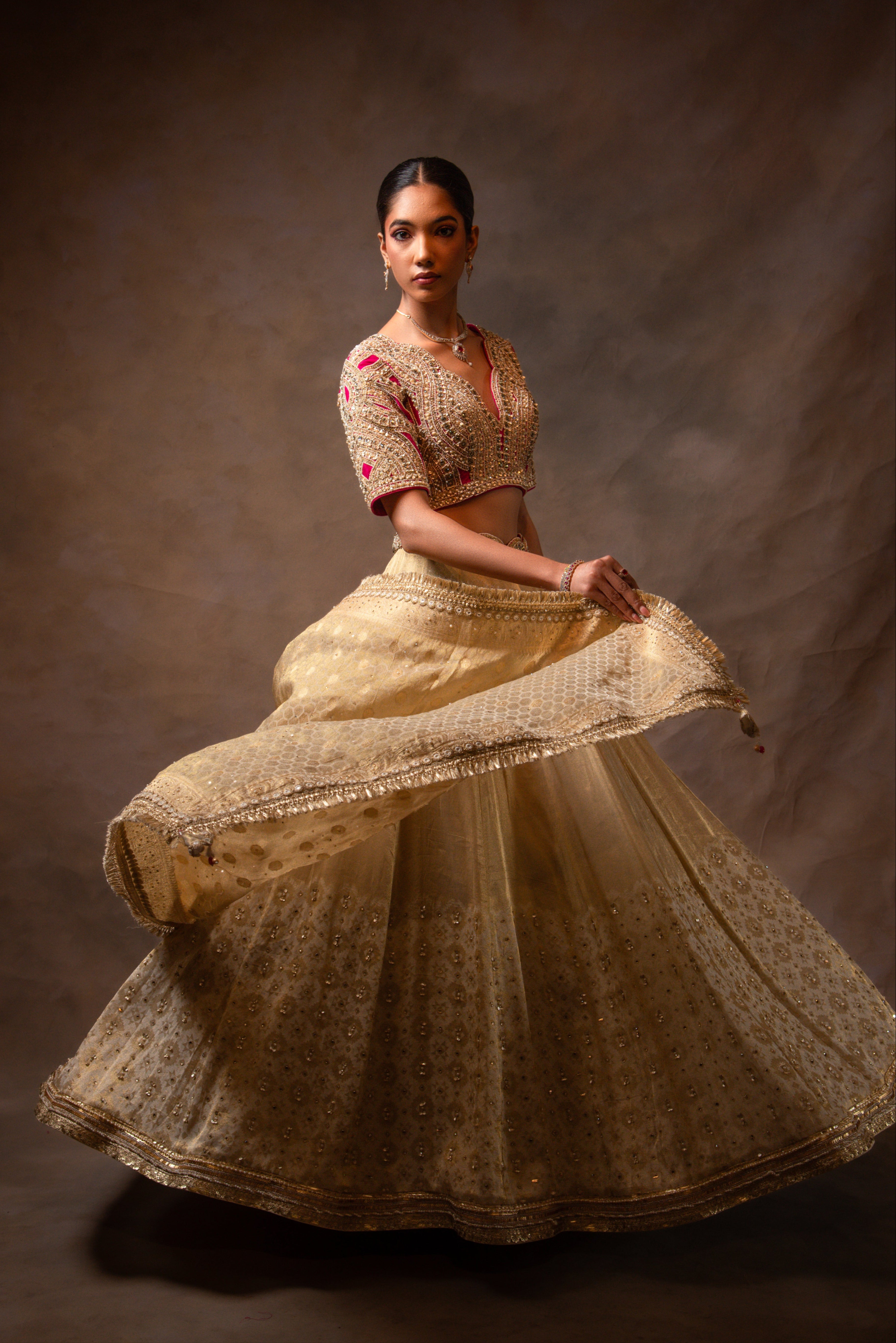 Moonlit Gold Raspberry Accent Ornate Lehenga