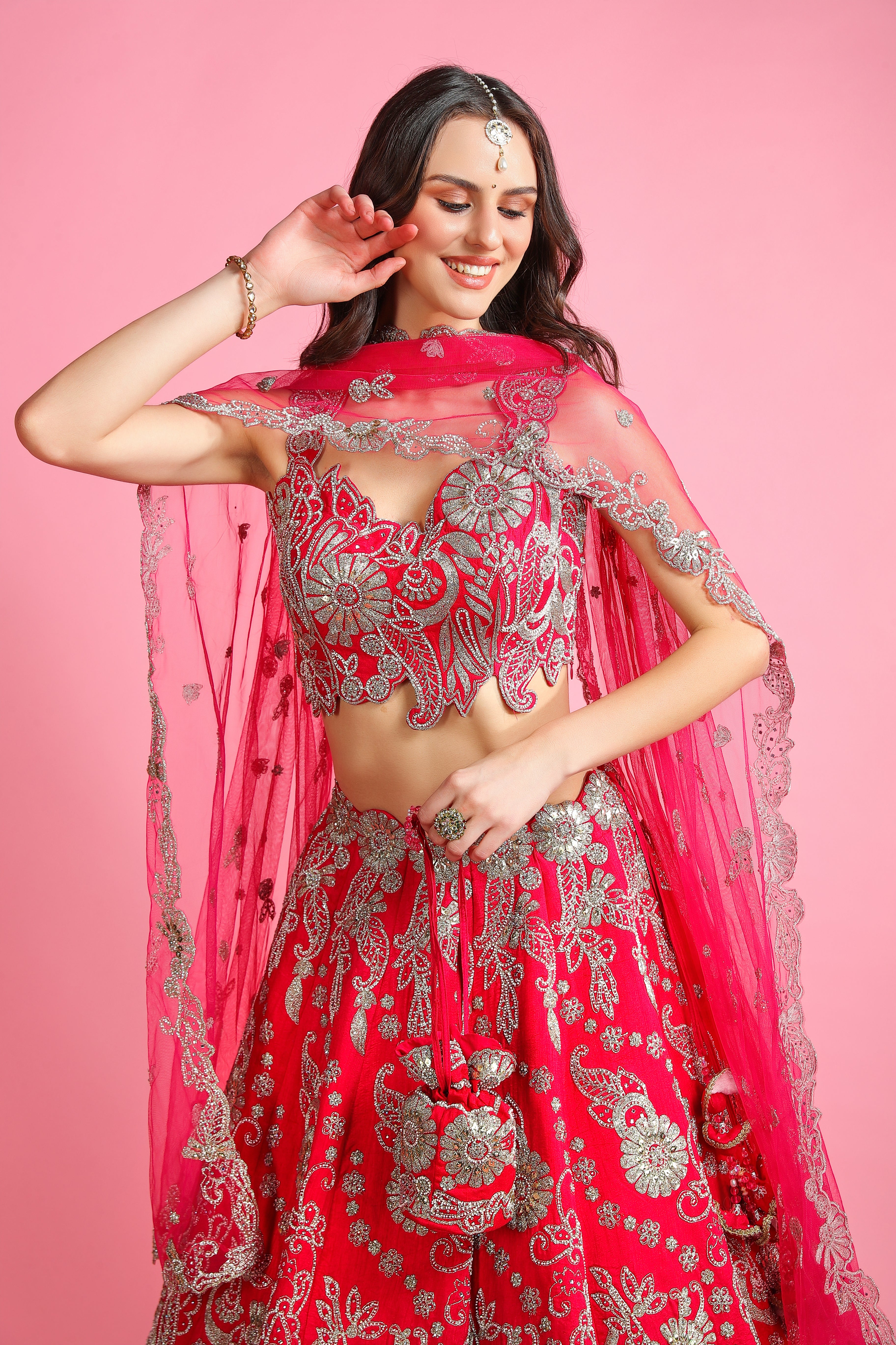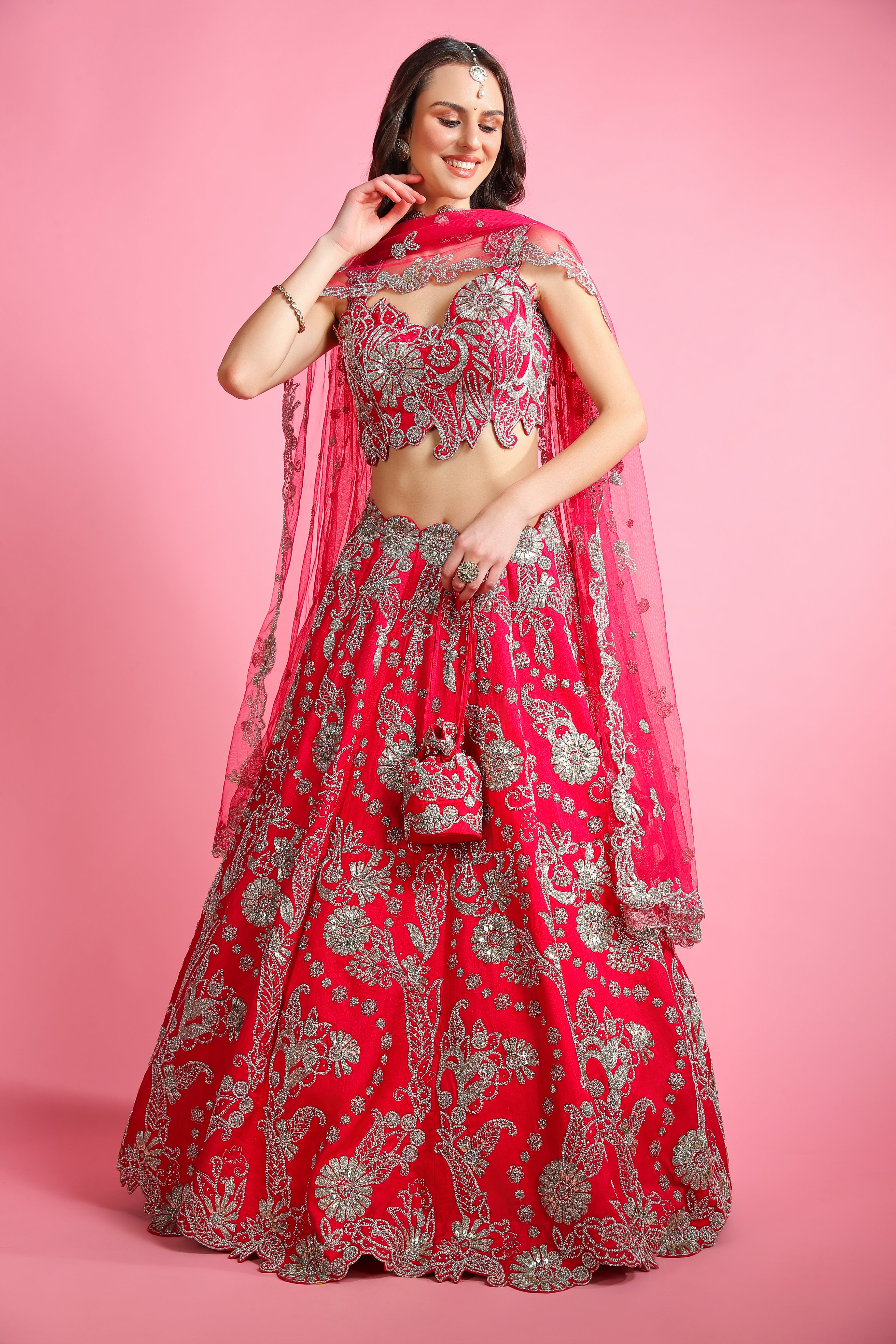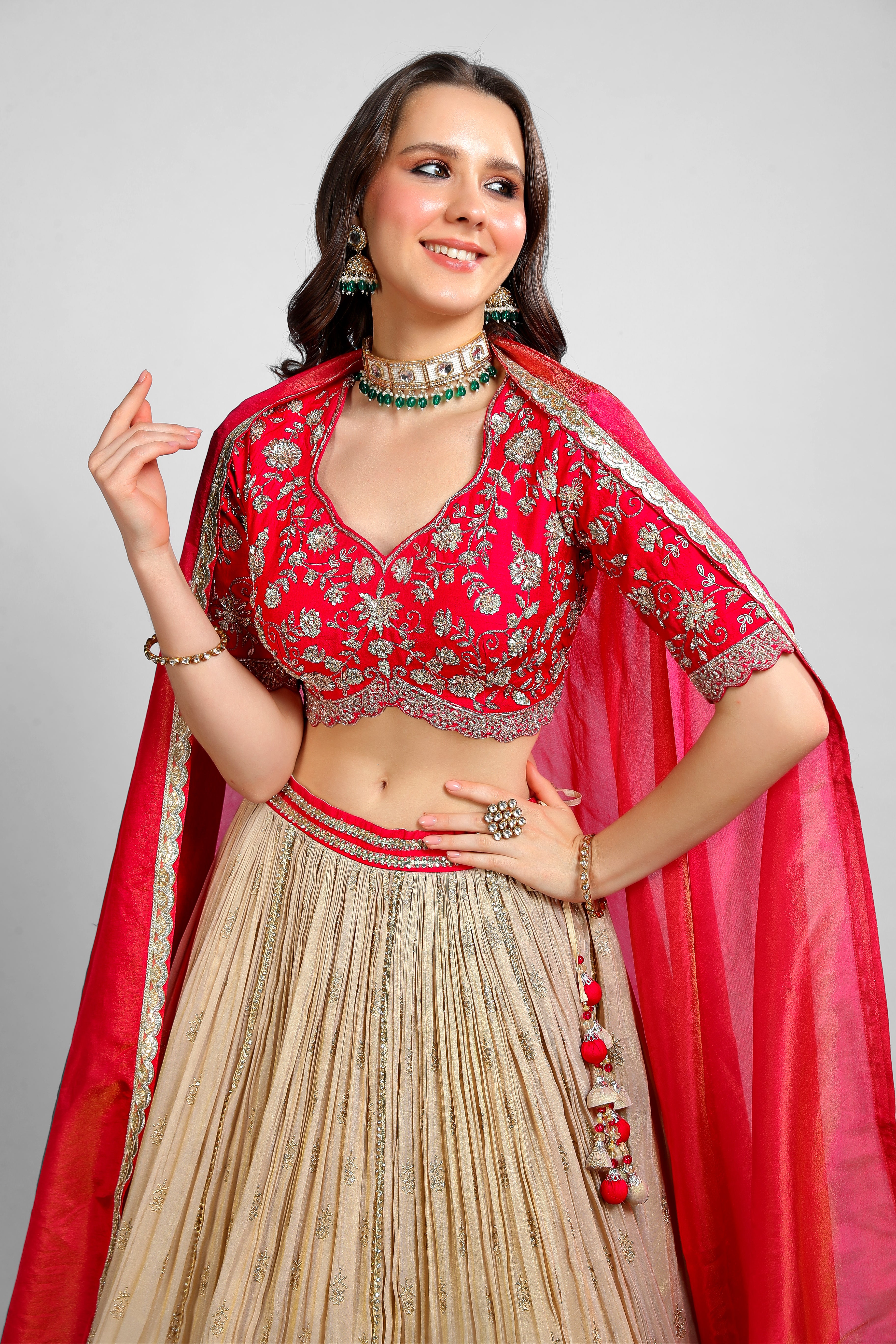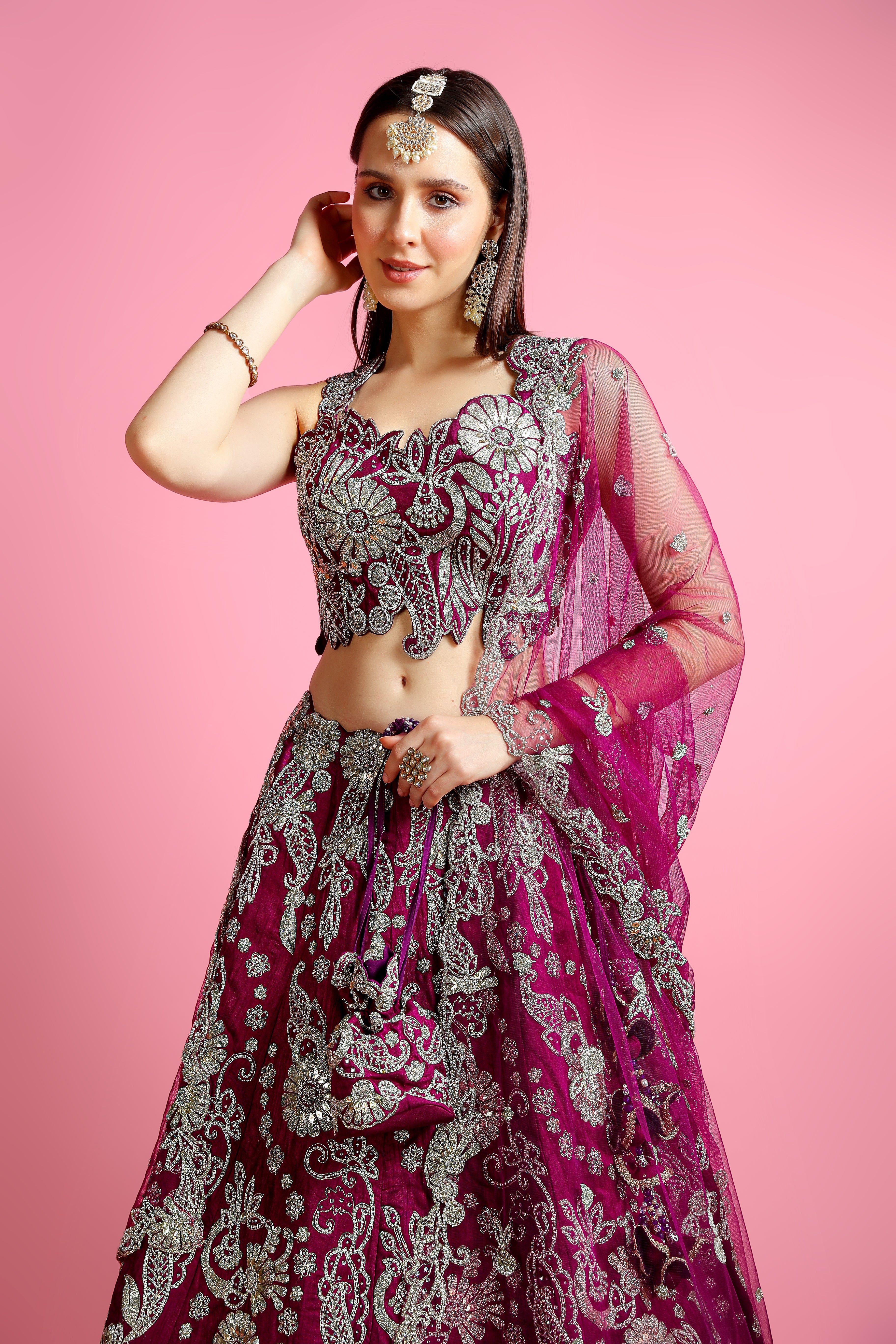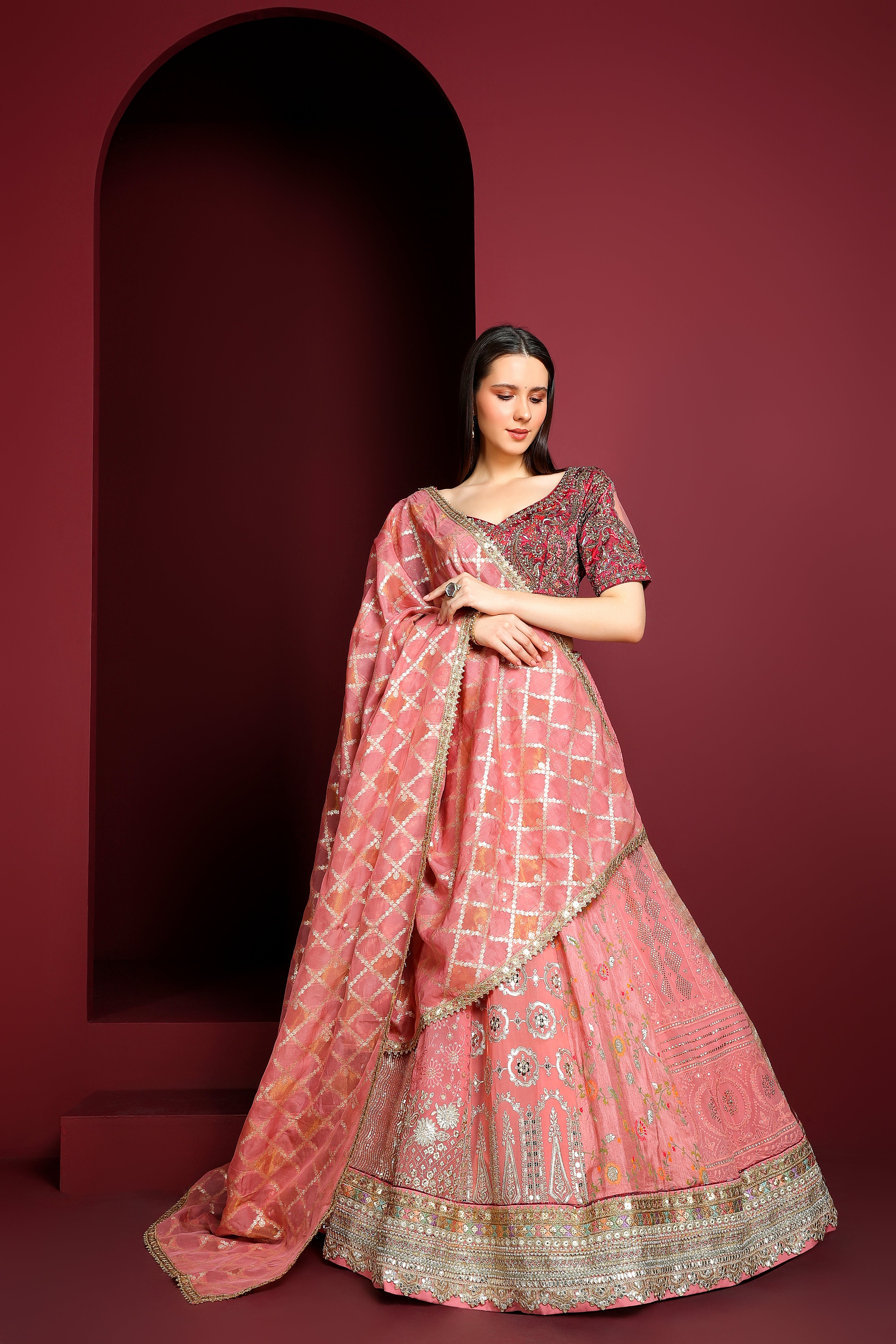 Moonlit Gold Raspberry Accent Ornate Lehenga