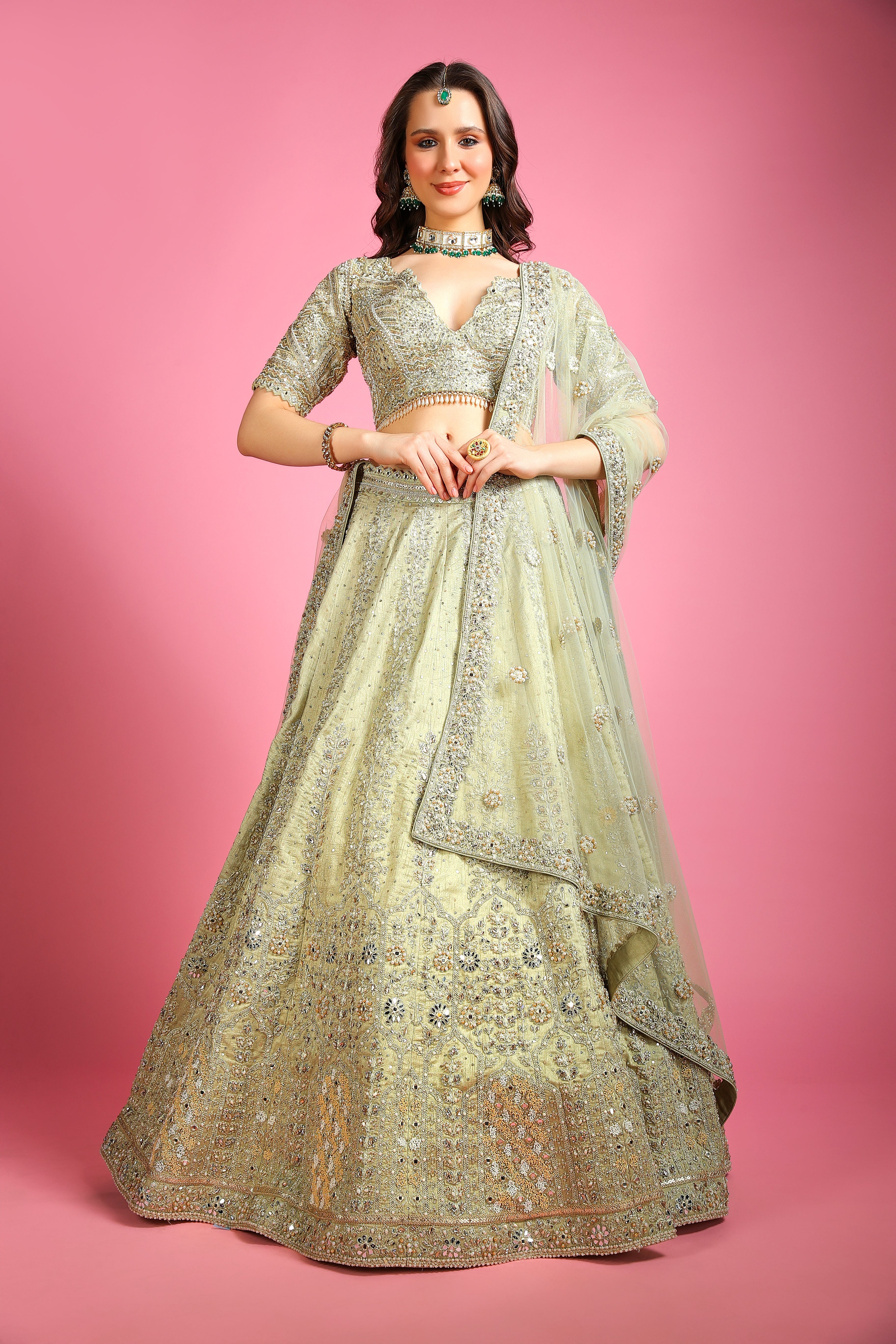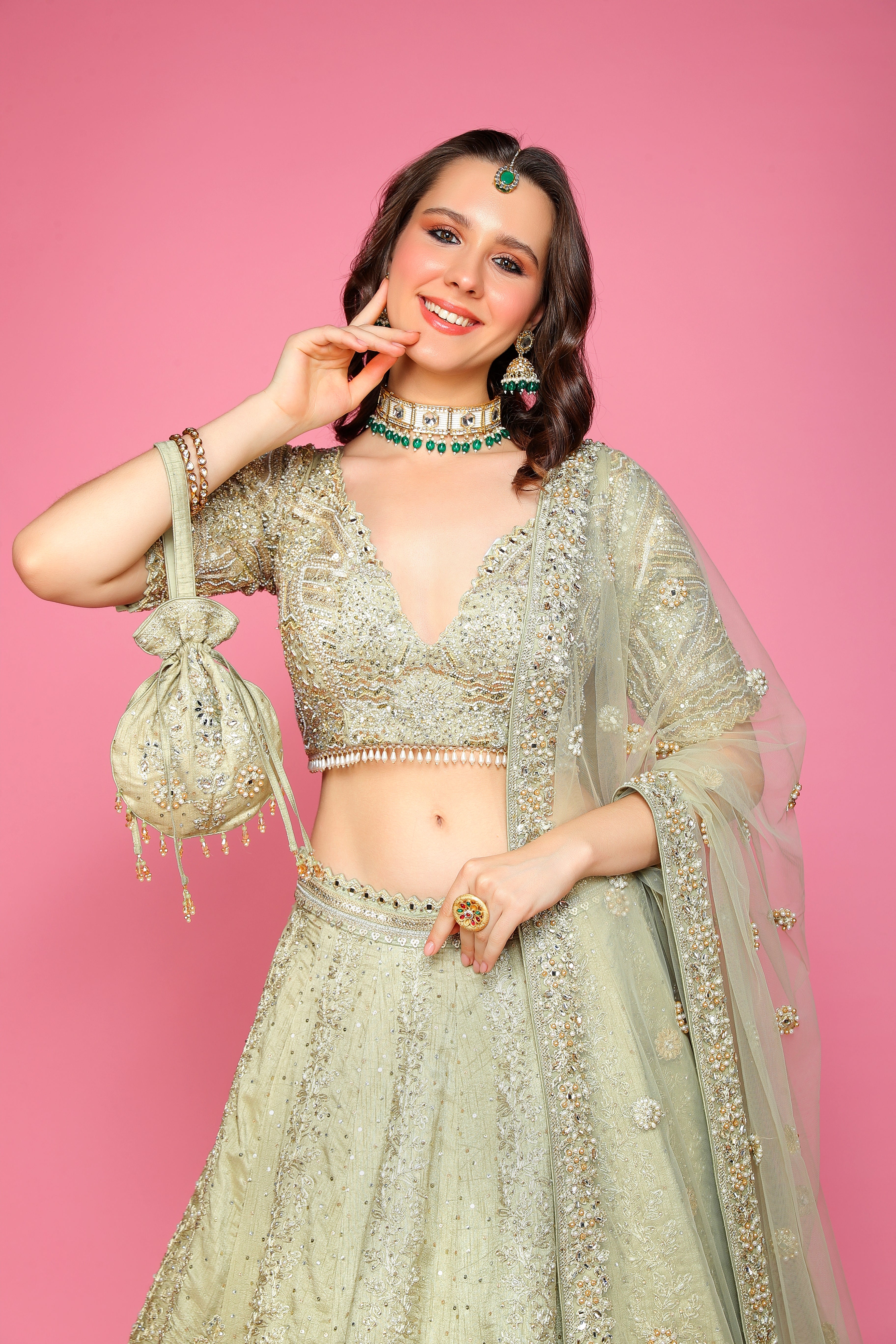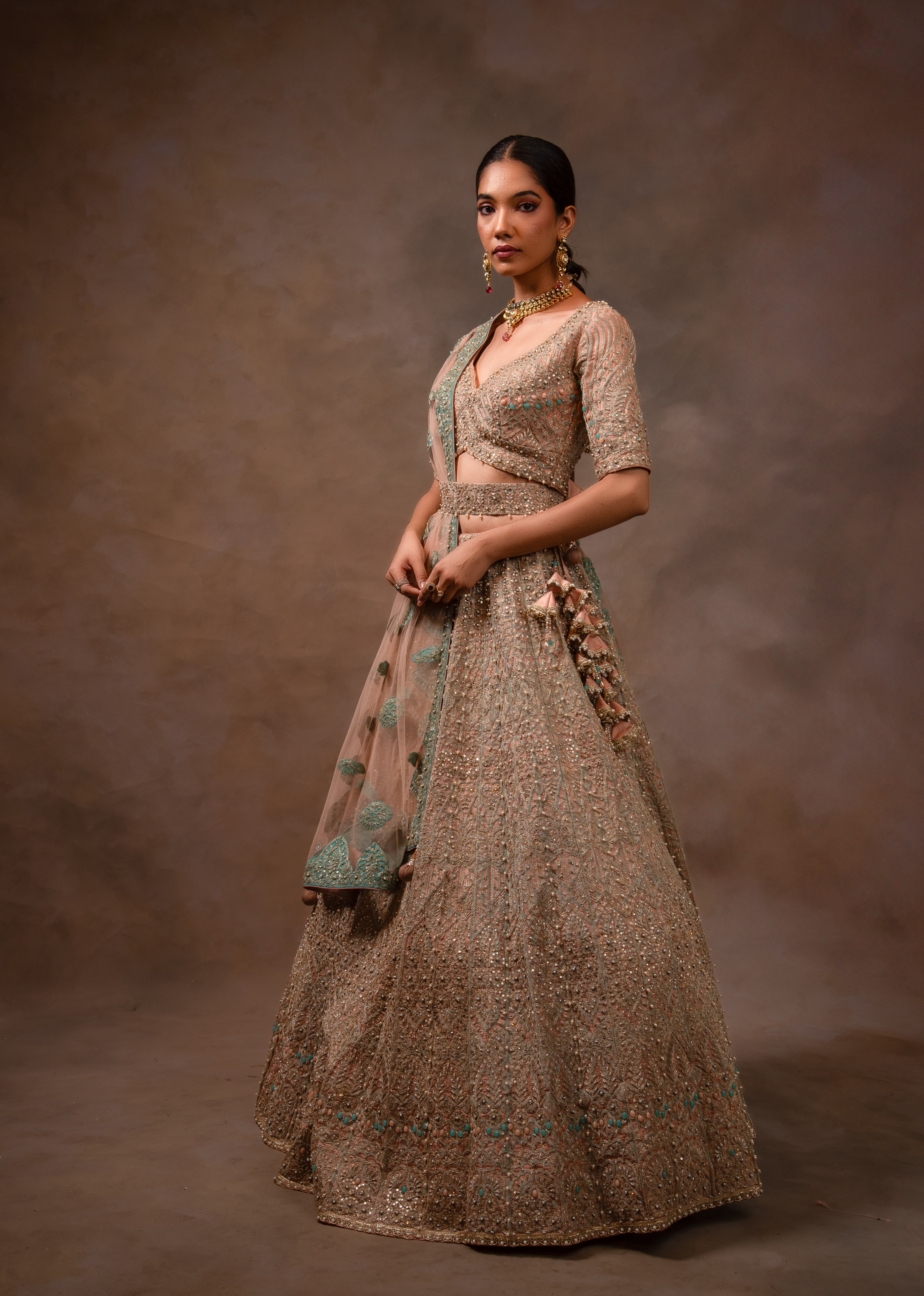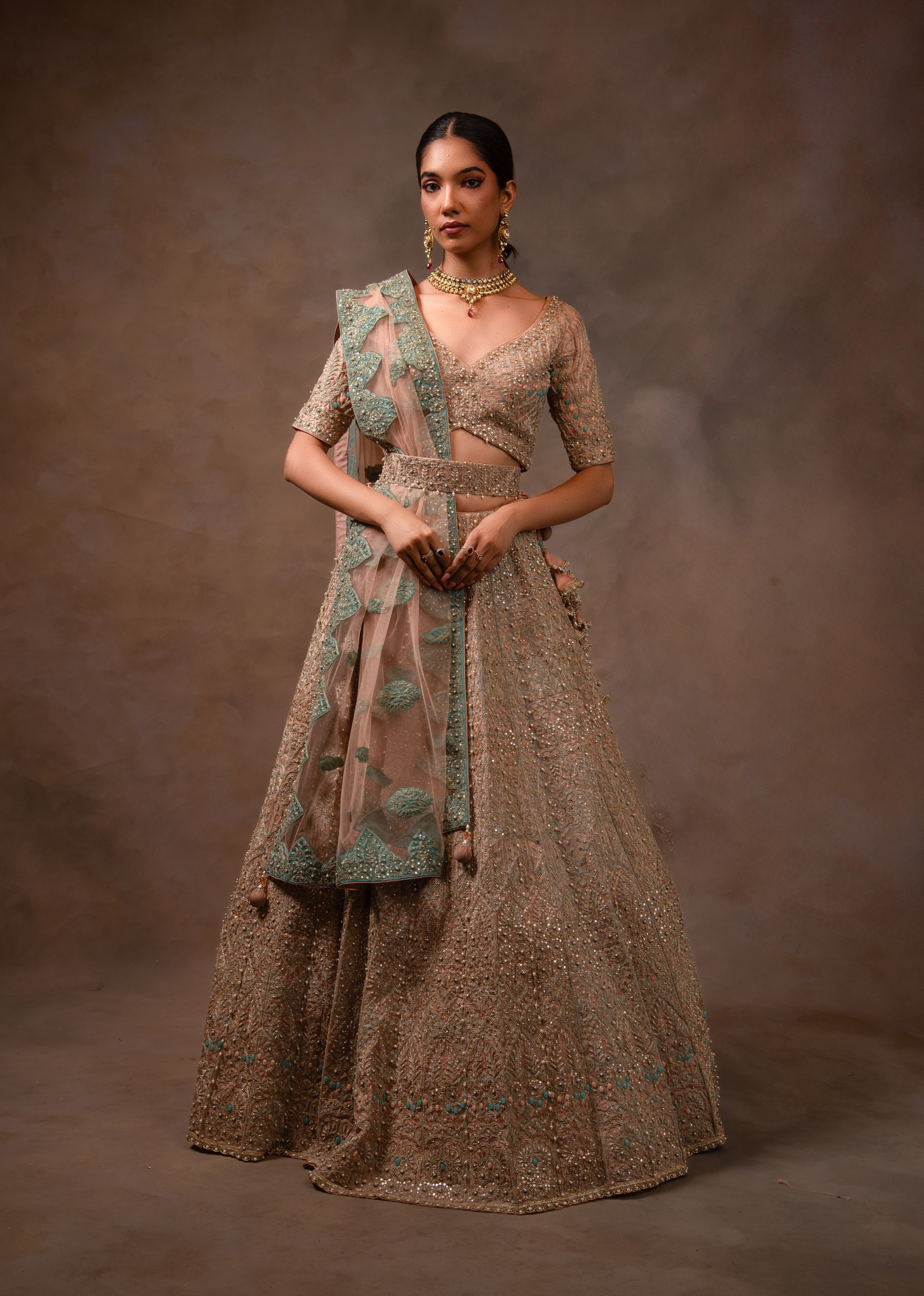 Zareen-E-Falak Mint Gold Beaded Lehenga