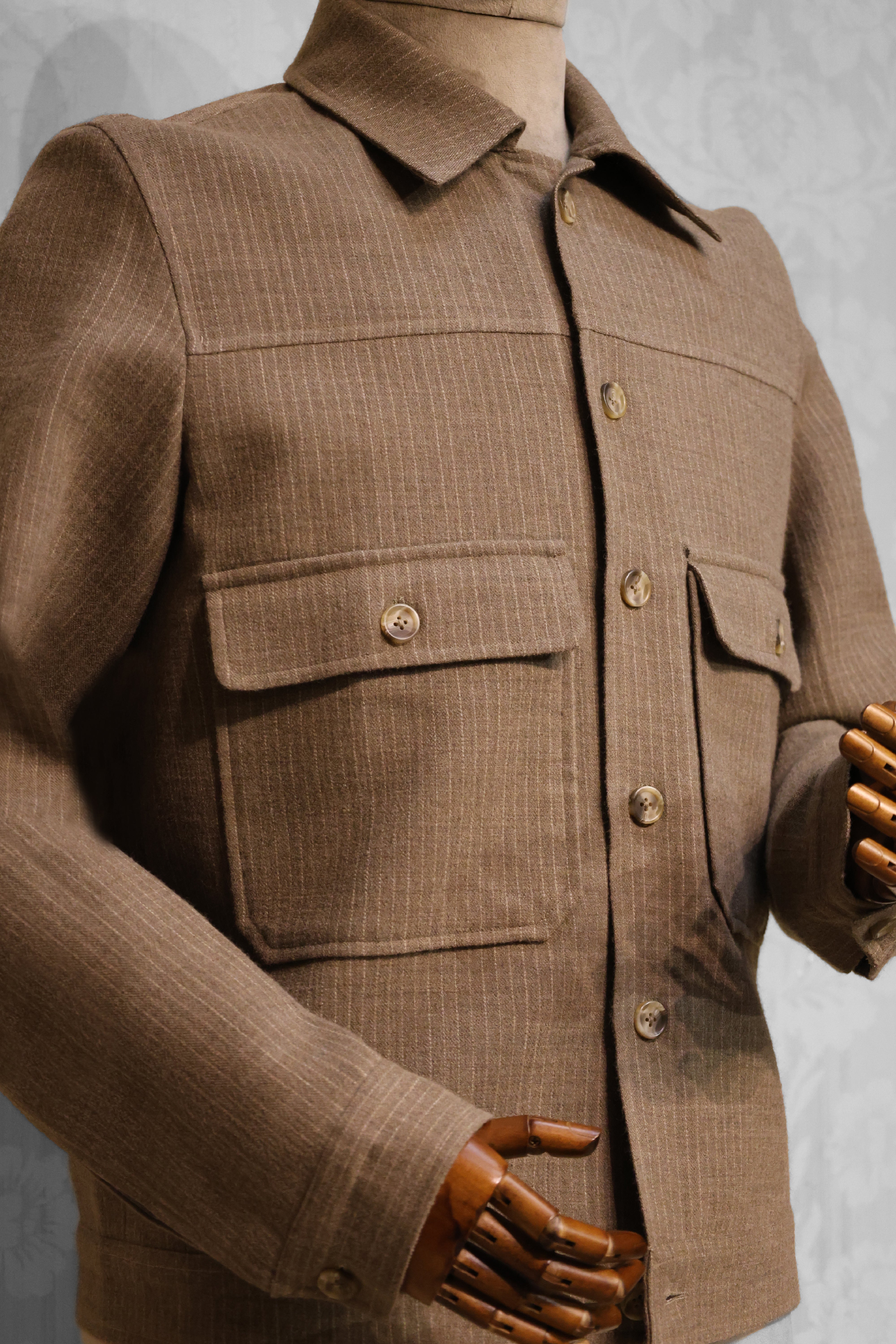 Earthy Taupe Pinstripe Wool Shacket
