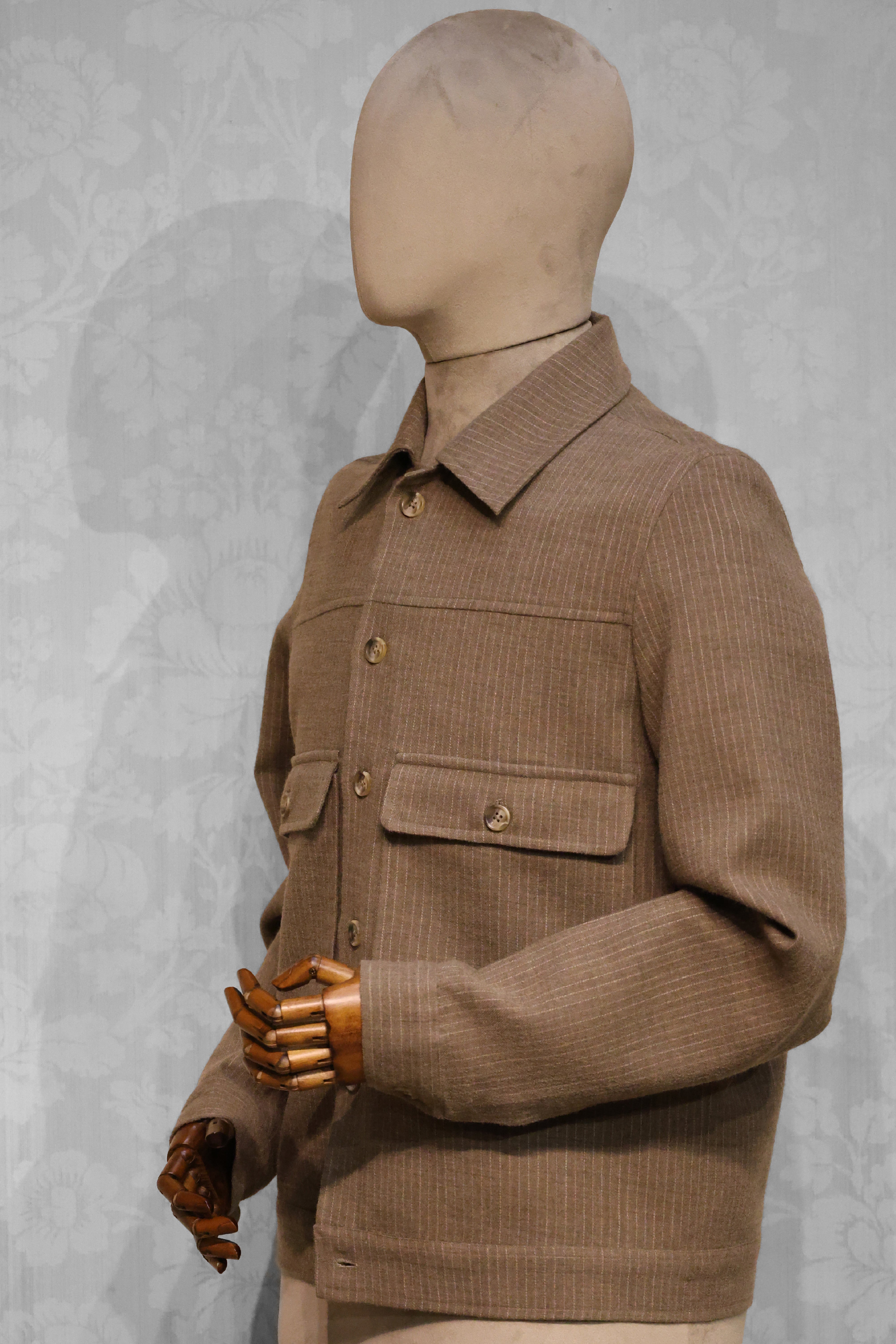 Earthy Taupe Pinstripe Wool Shacket Skip to content