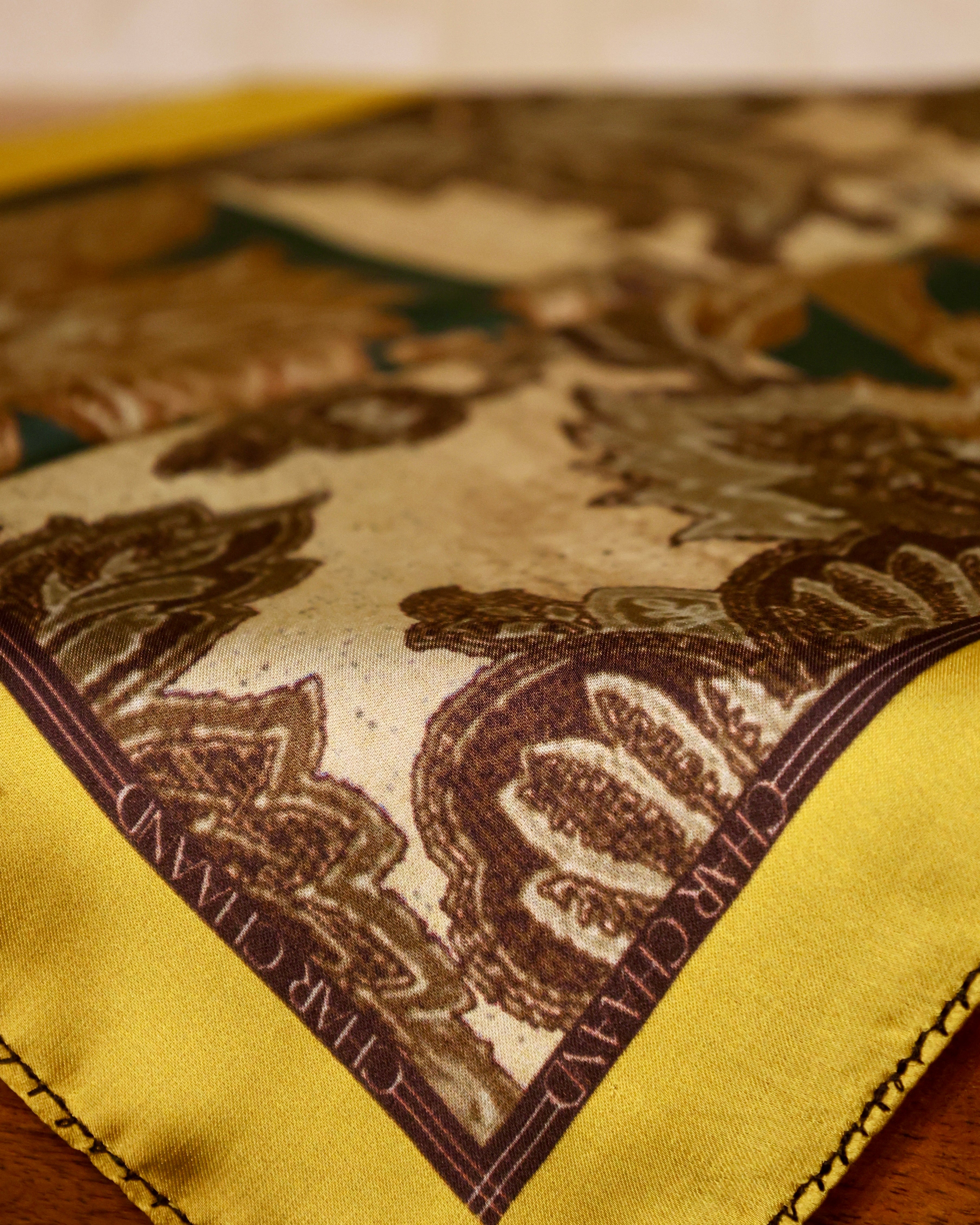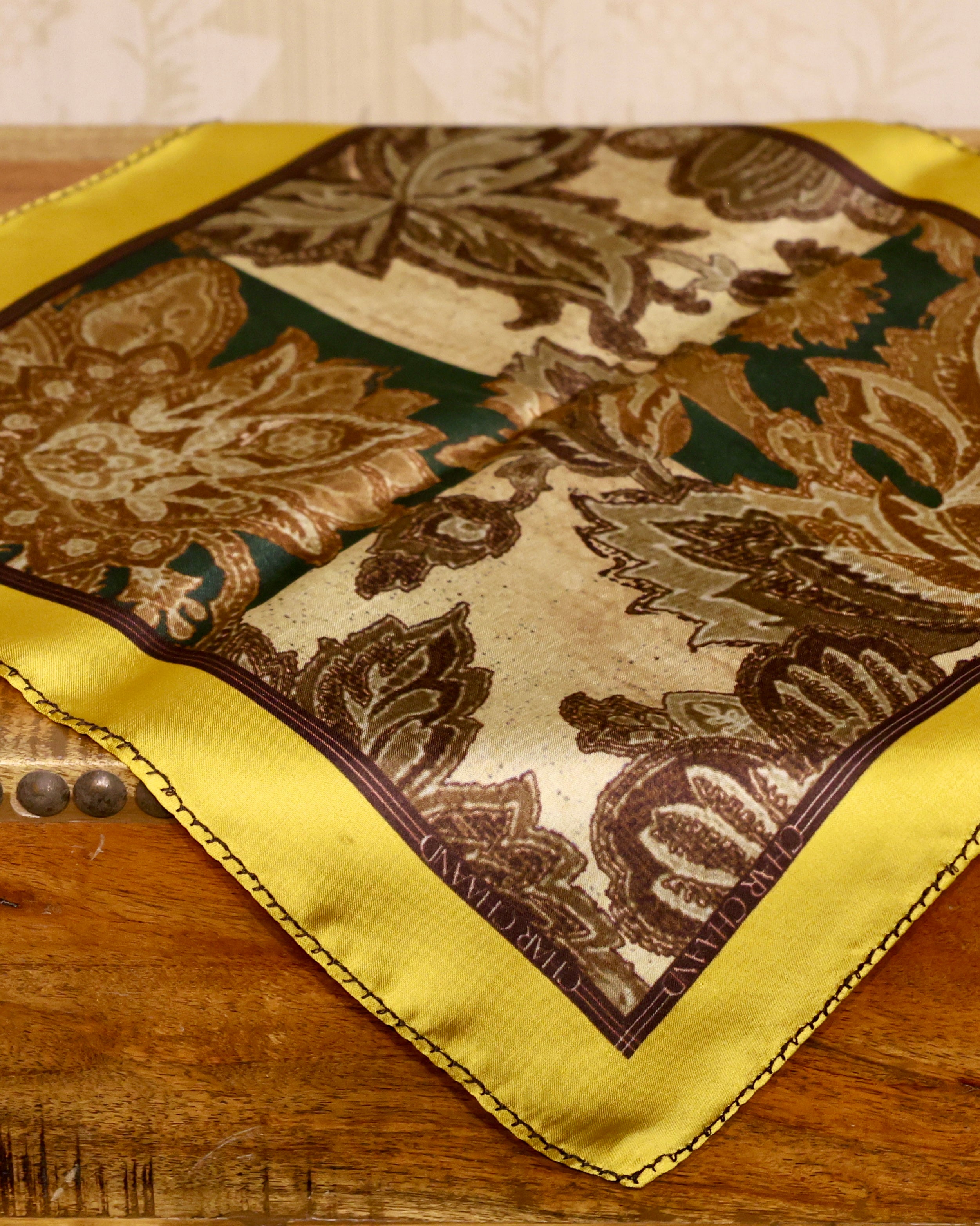 - Material and Craftsmanship: Handcrafted from fine fabric, the square features detailed prints and seamless stitching, merging opulence with practicality.