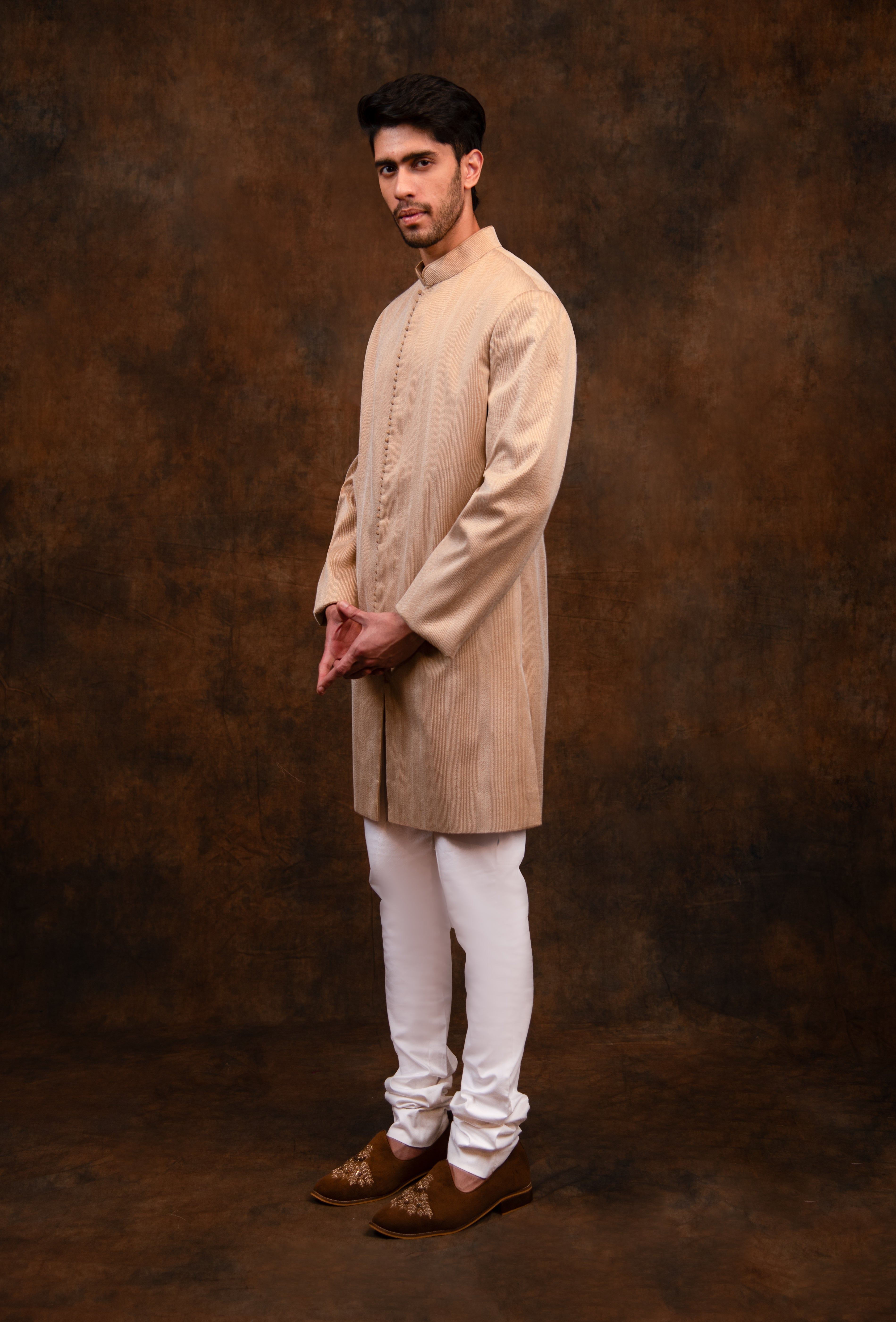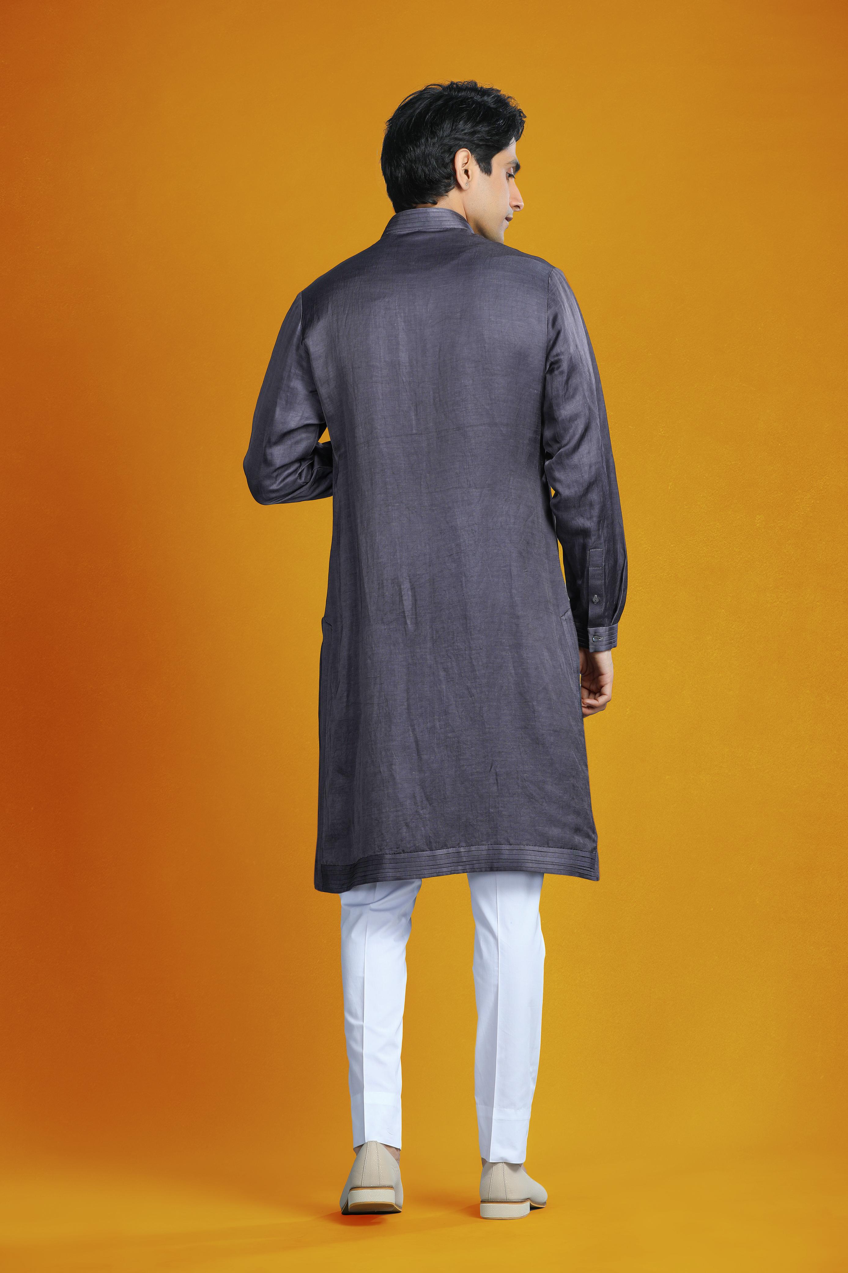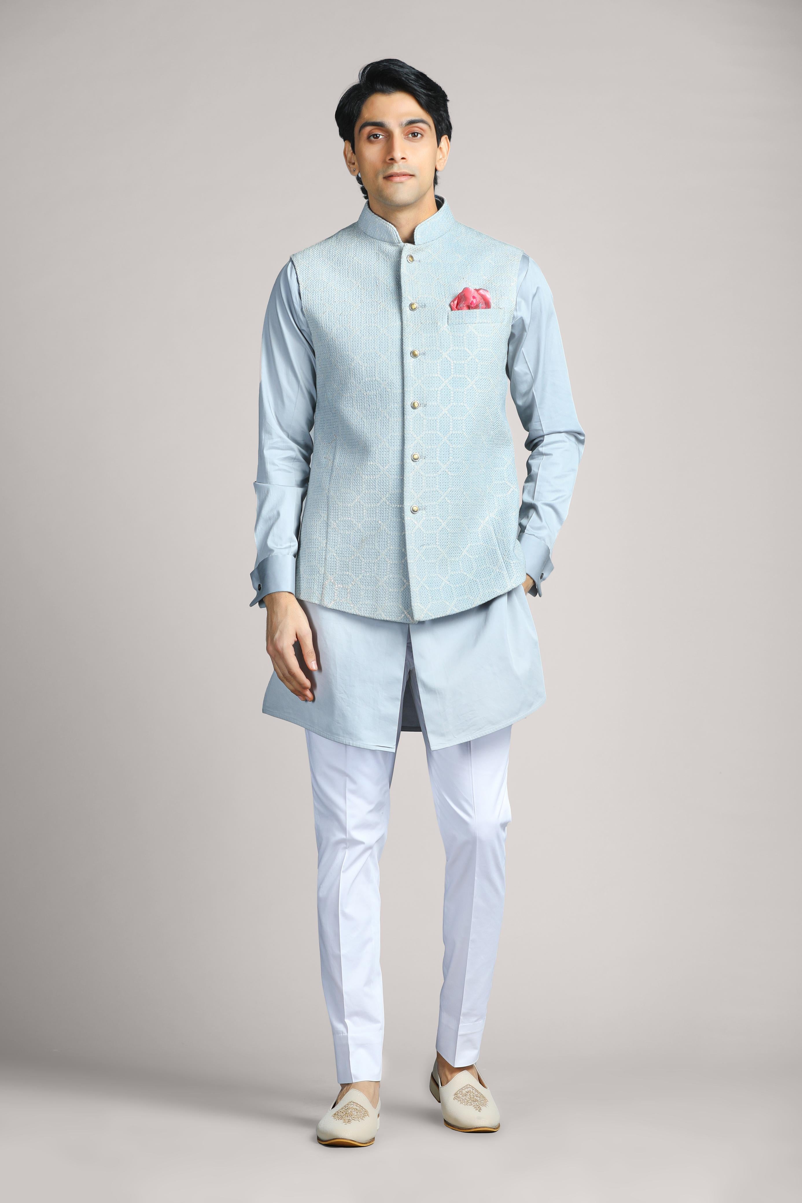 Introducing the Grey Mist Bundi & Kurta Set, a sophisticated ensemble that blends traditional artistry with modern tailoring. The chikankari embroidered Bundi, crafted in a timeless grey shade, pairs effortlessly with the linen satin kurta featuring pleat detailing on the cuffs, collar, and hemline. Ideal for formal gatherings or festive events, this outfit offers comfort without compromising on style.