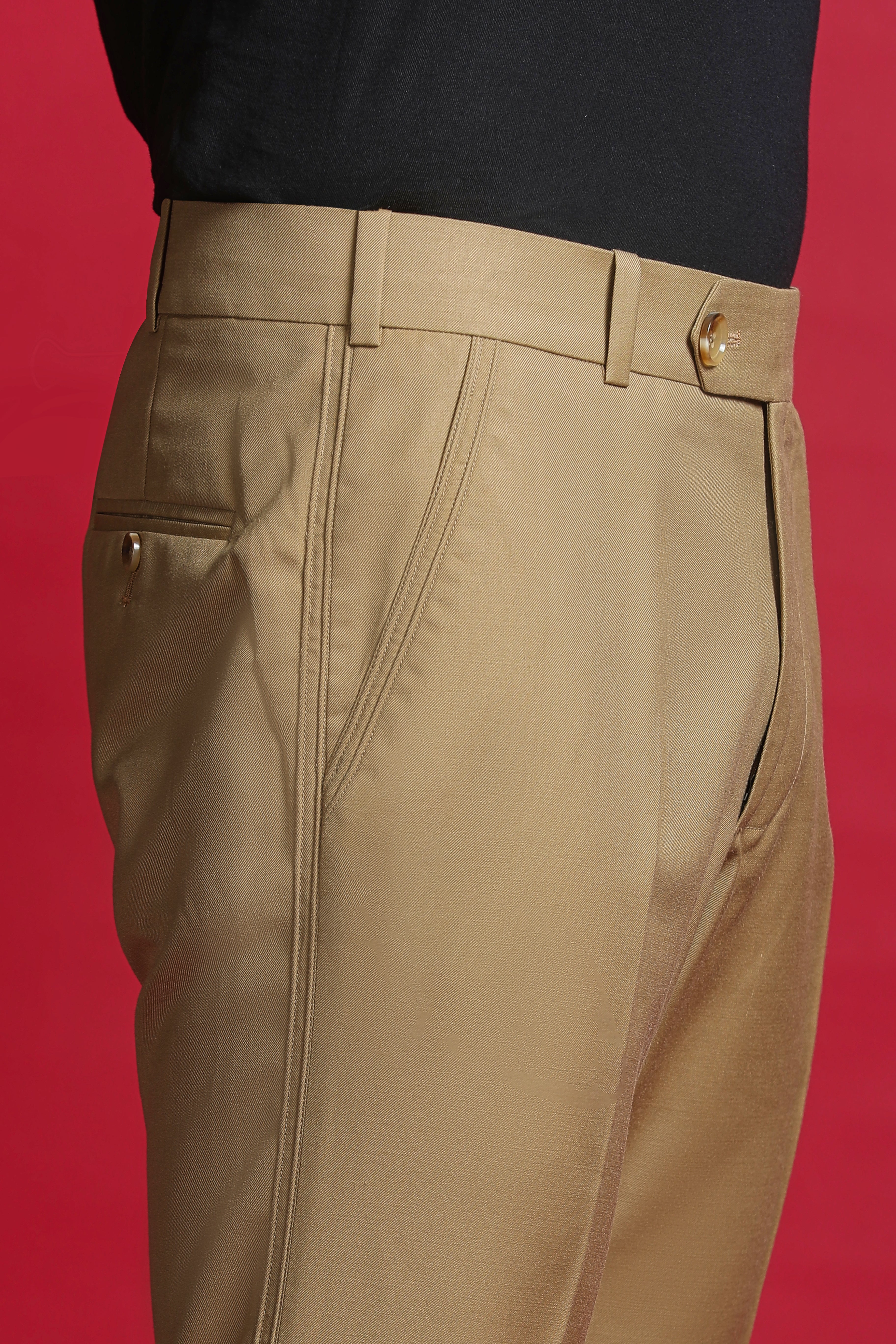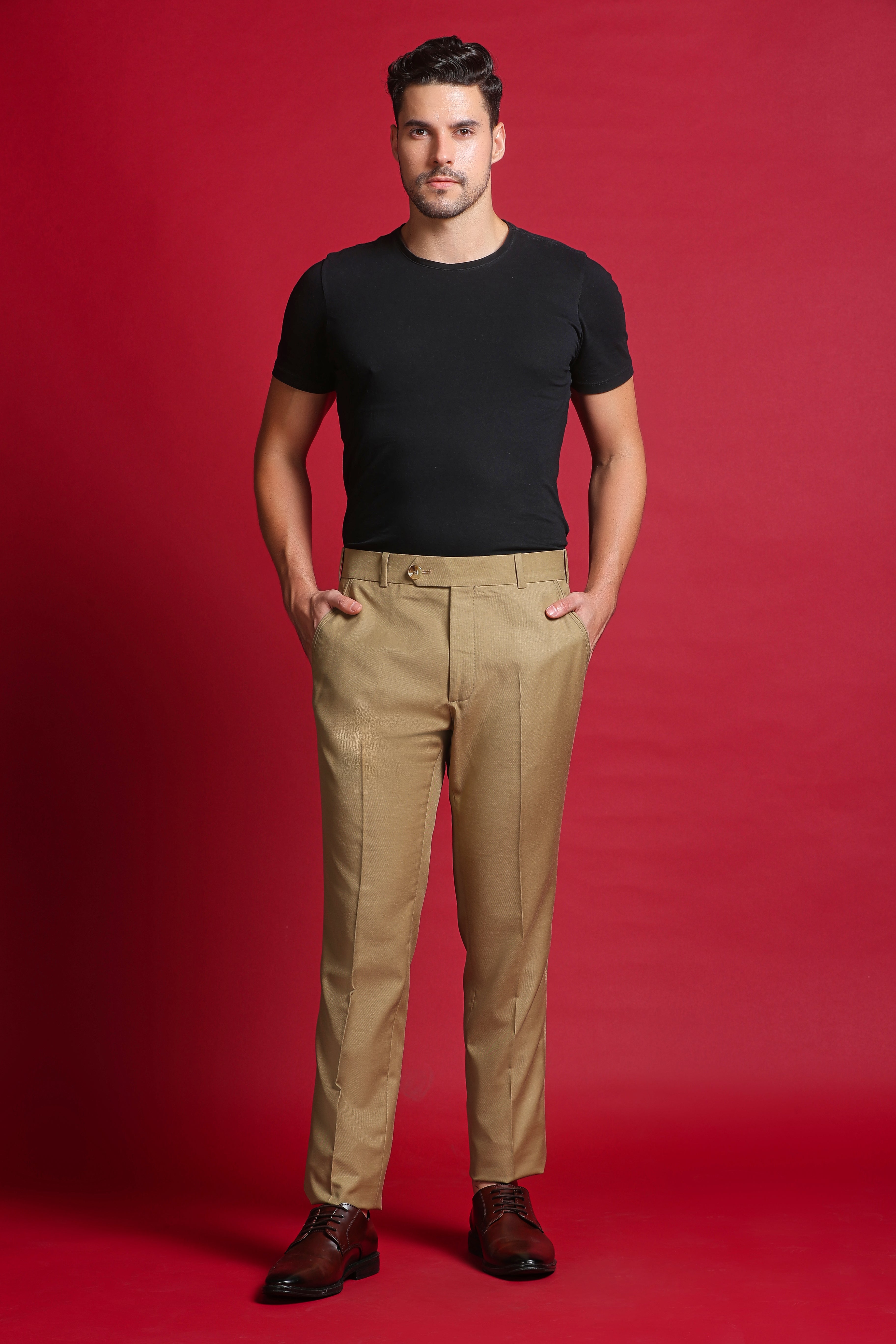 Introducing Khaki Chino-Style Formal Pants, crafted for those who value subtle detail and timeless tailoring. Enhanced with fine cord pintuck detailing along the sides, these pants offer a polished finish and structured silhouette. The smart body fit ensures a clean and contemporary look.