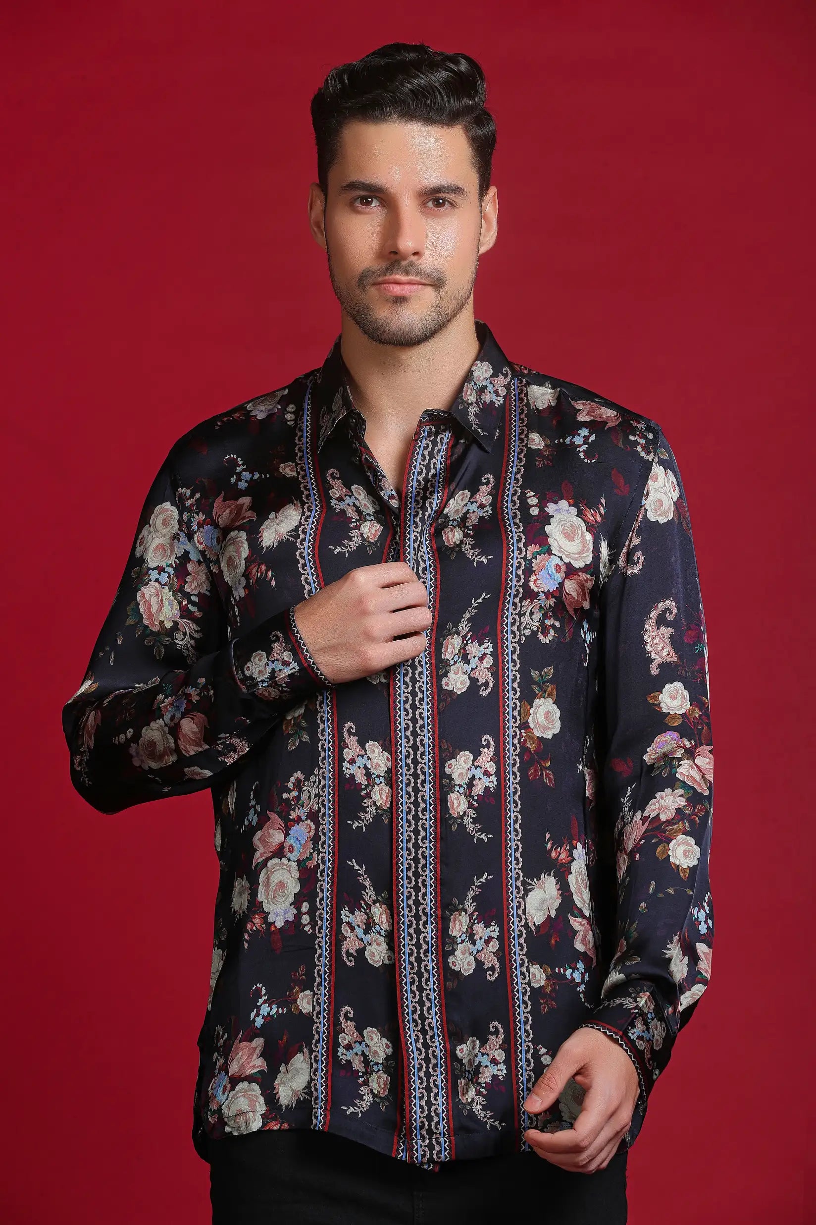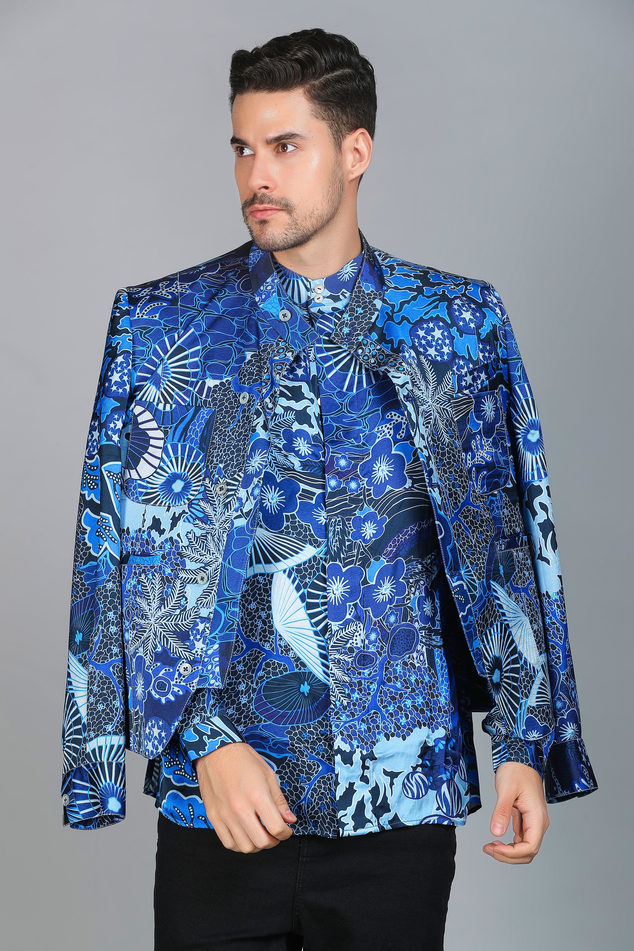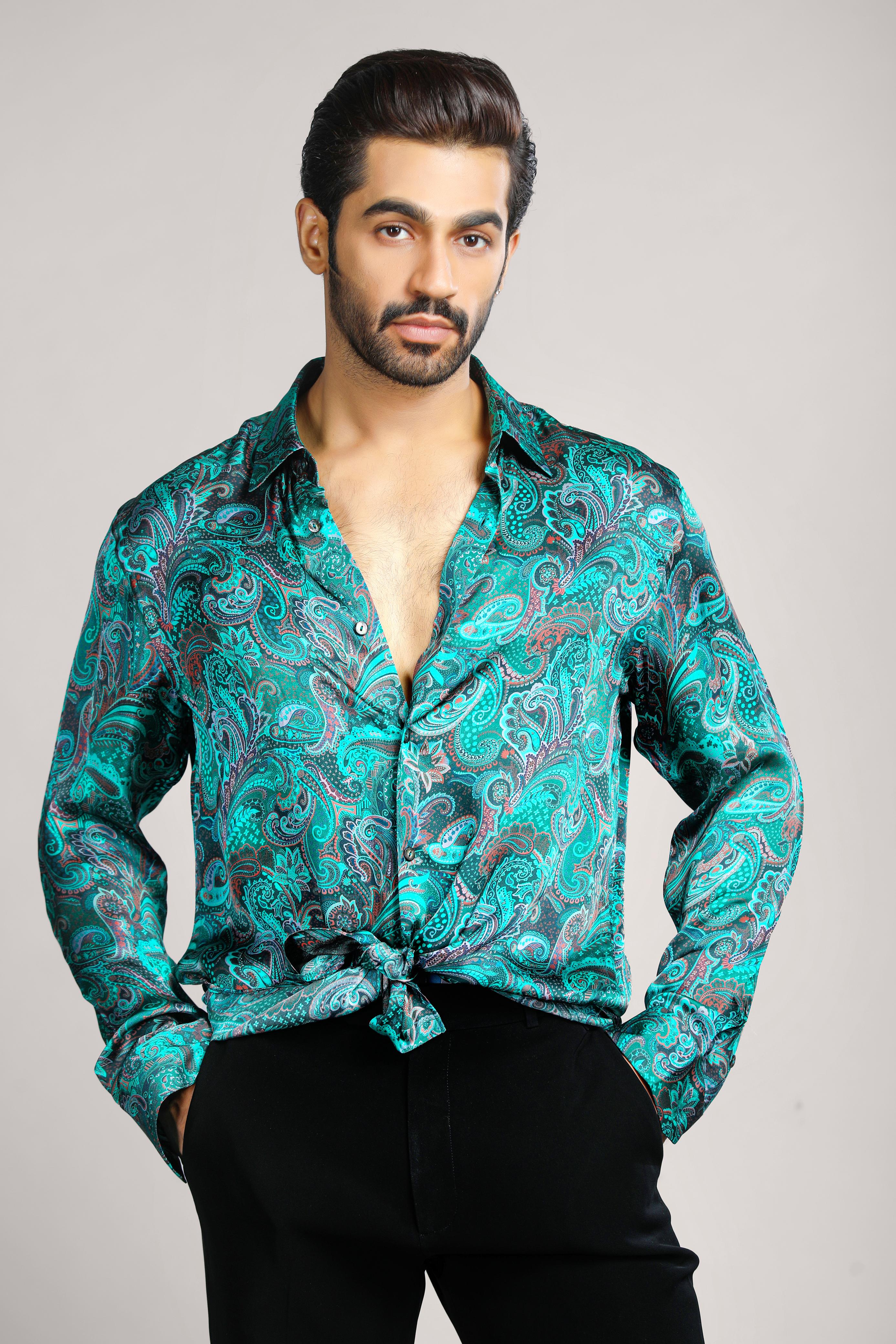 Make a bold statement with our Midnight Marine Shirt, crafted in premium satin silk for a sleek and luxurious feel. Featuring vibrant shades of blue with marine life-inspired digital prints, this shirt merges contemporary style with artistic detail.