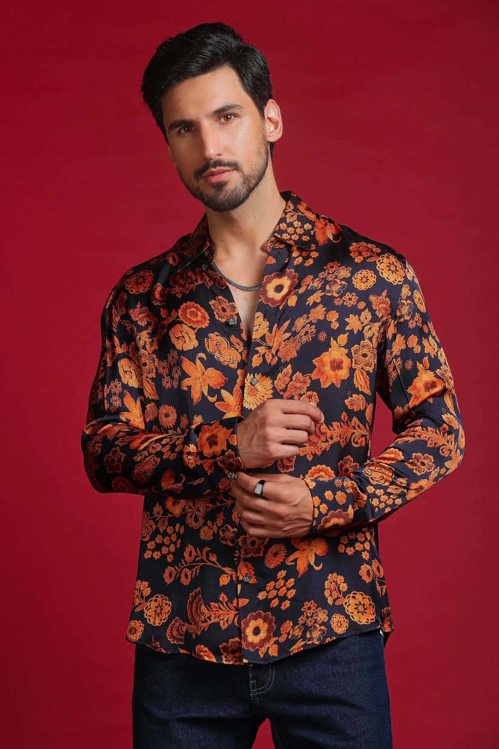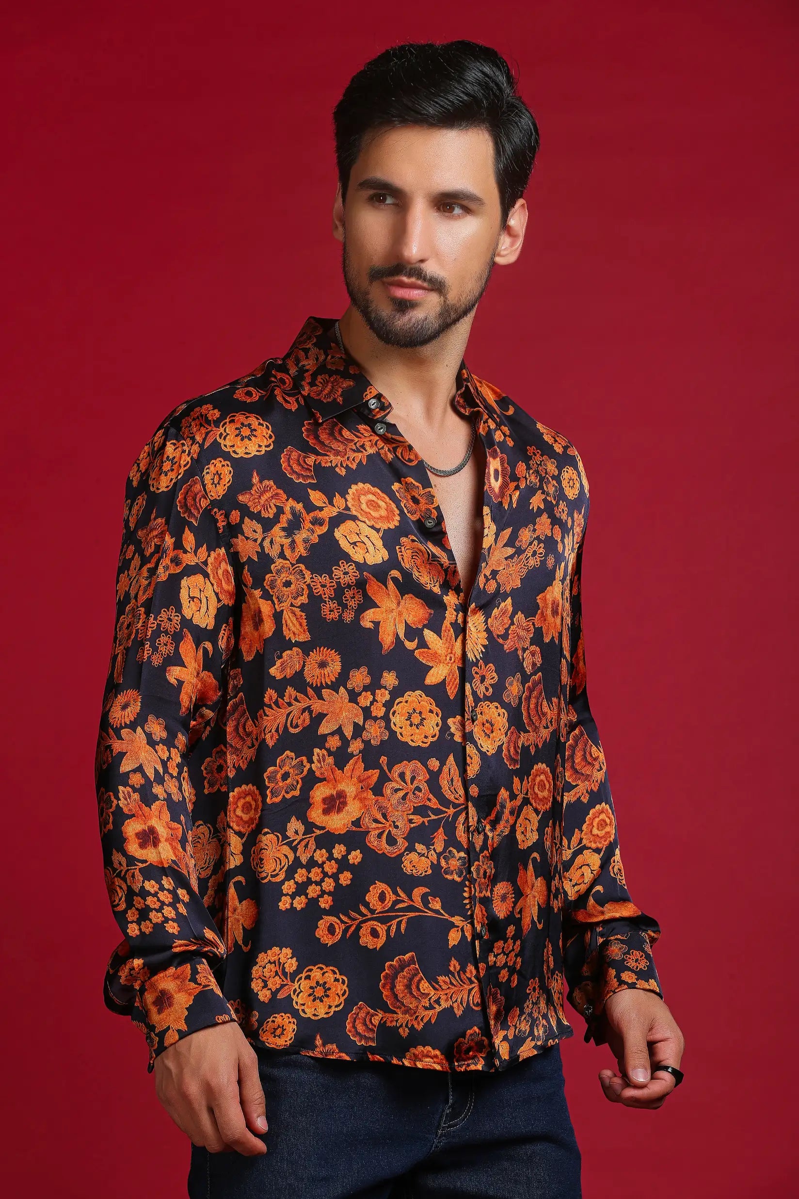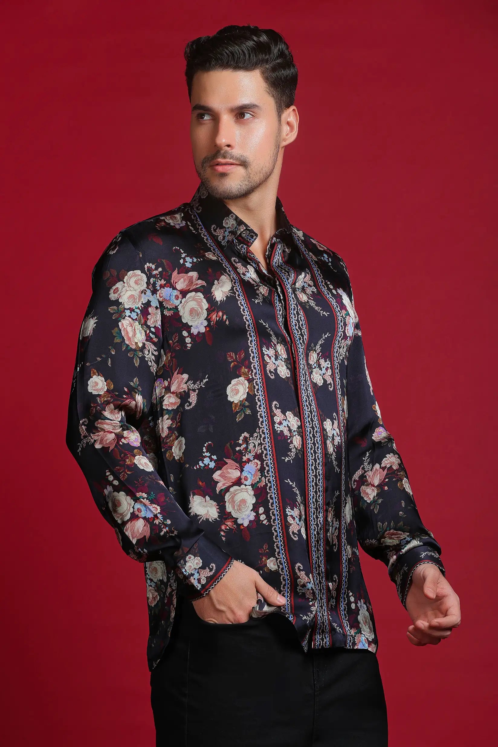 Make a bold statement with our Midnight Marine Shirt, crafted in premium satin silk for a sleek and luxurious feel. Featuring vibrant shades of blue with marine life-inspired digital prints, this shirt merges contemporary style with artistic detail.