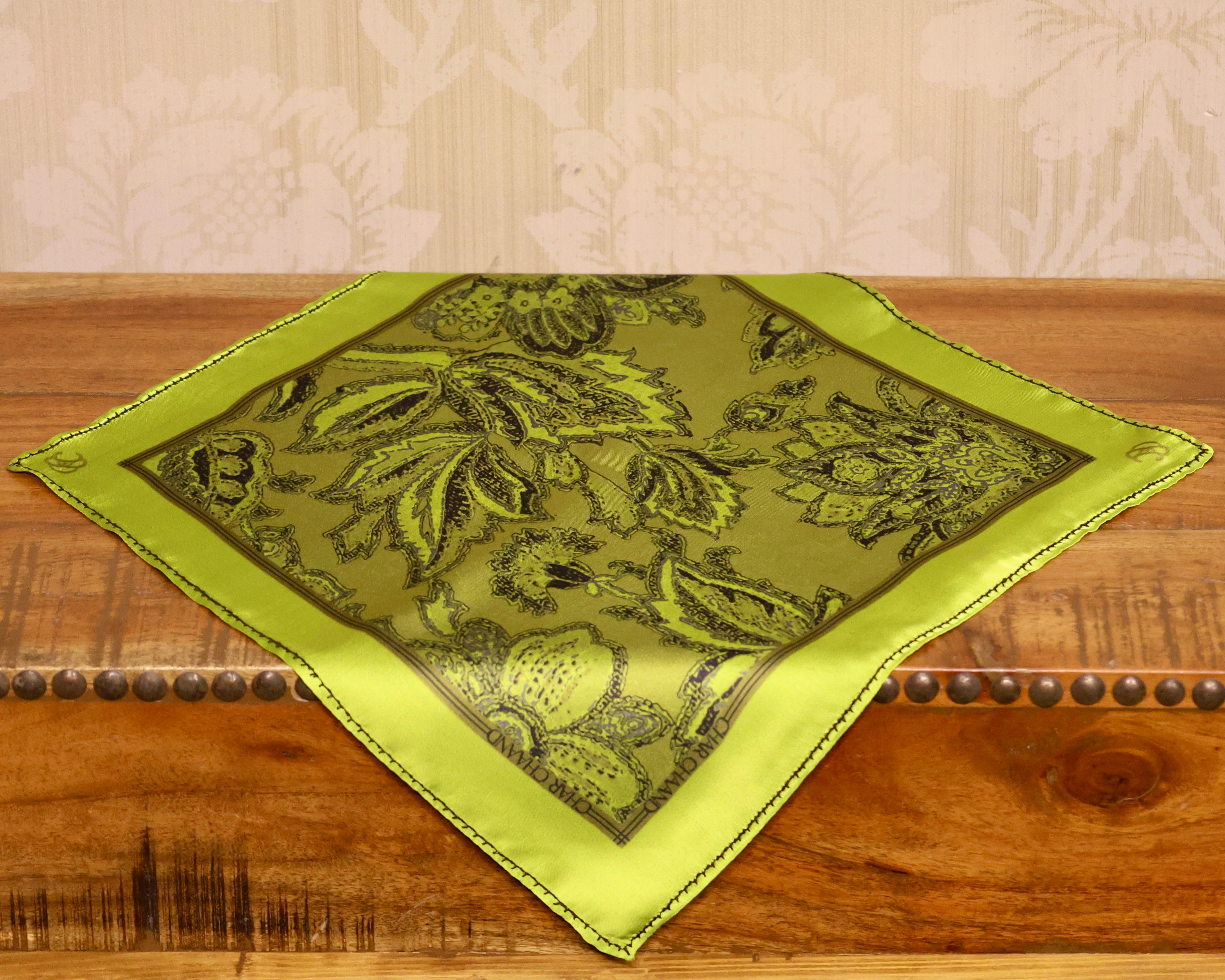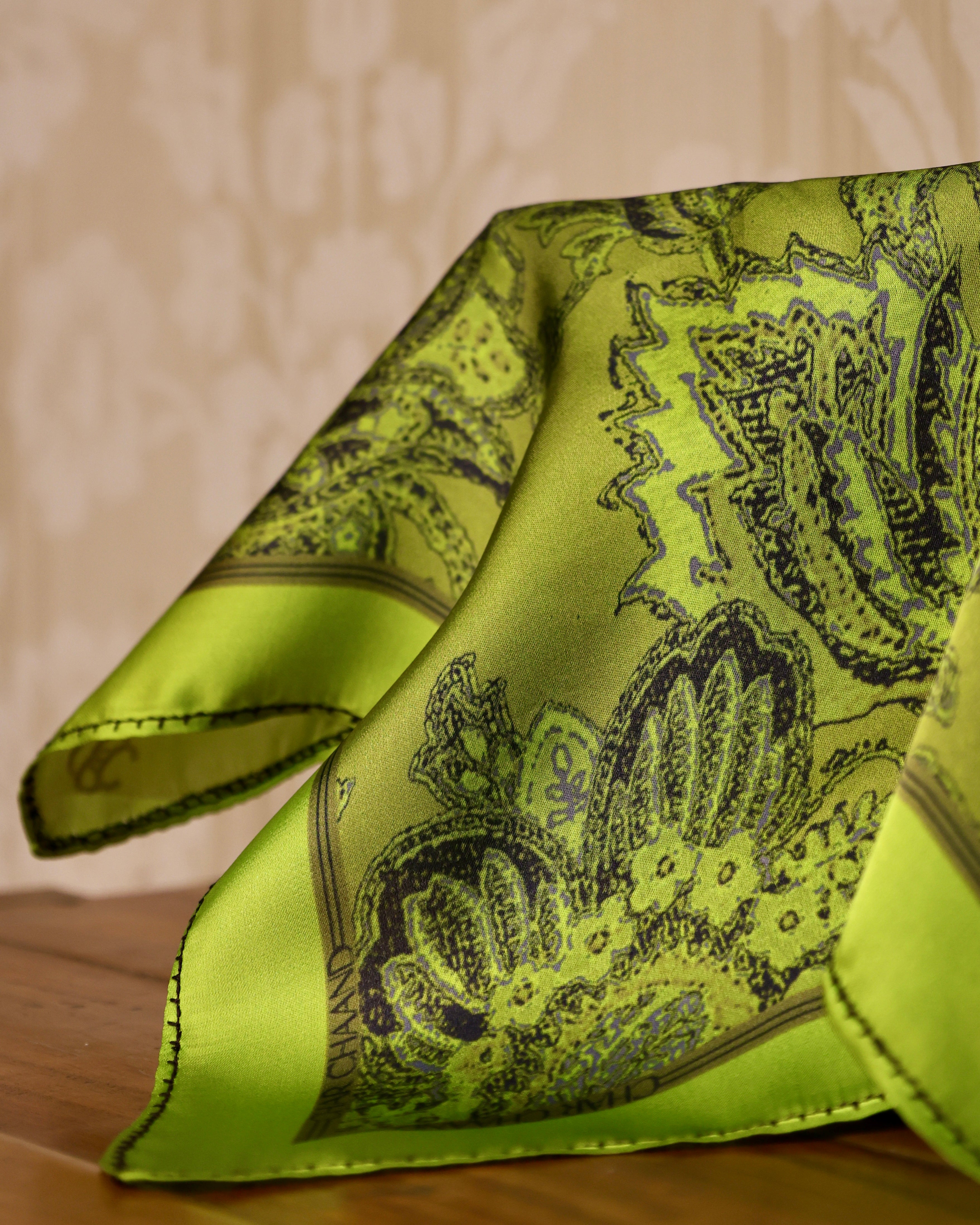 The "Verdant Elegance" pocket square features a lush botanical design in vibrant green hues, capturing the essence of nature's beauty. Its intricate floral patterns radiate freshness and sophistication, making it a standout accessory for any ensemble.