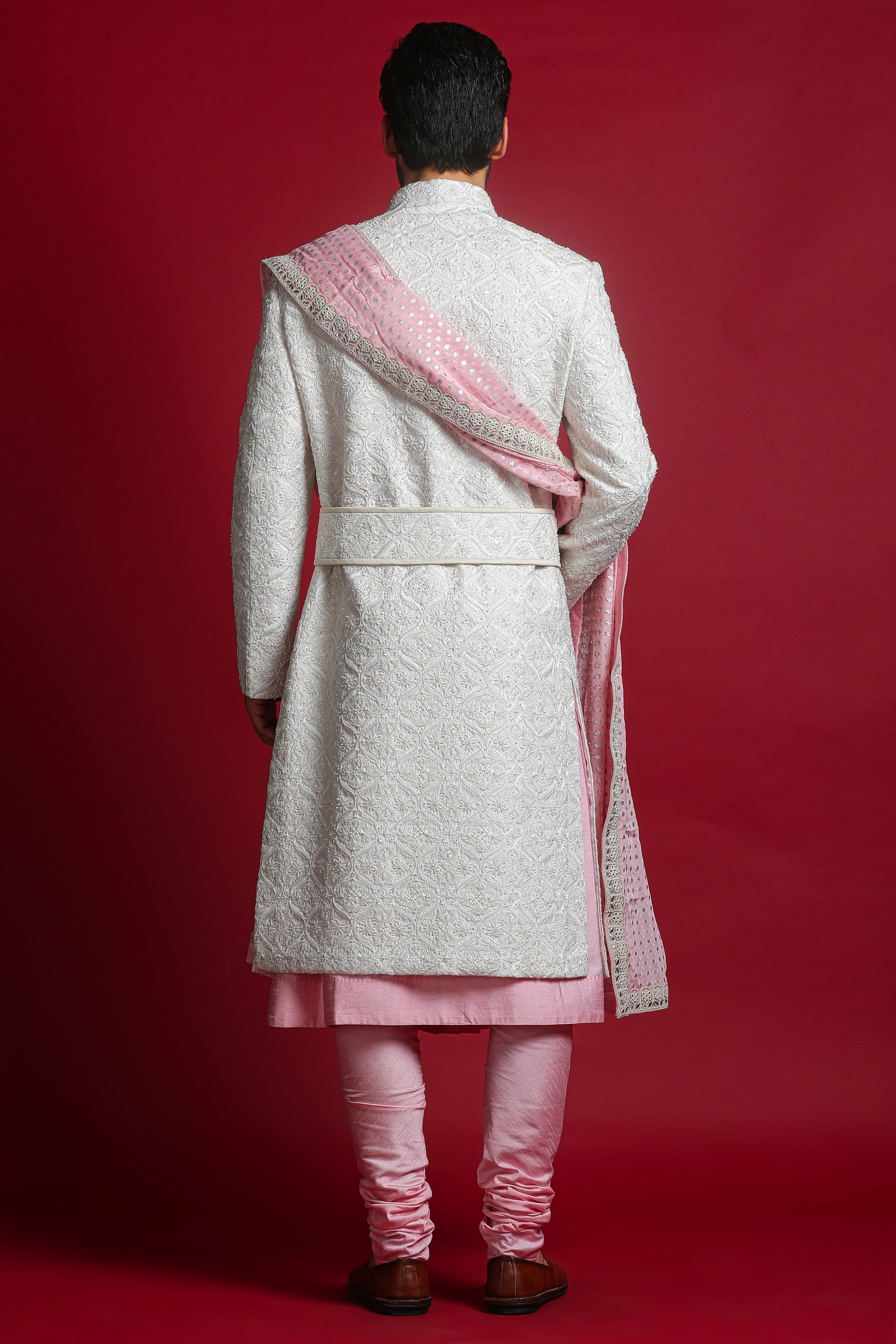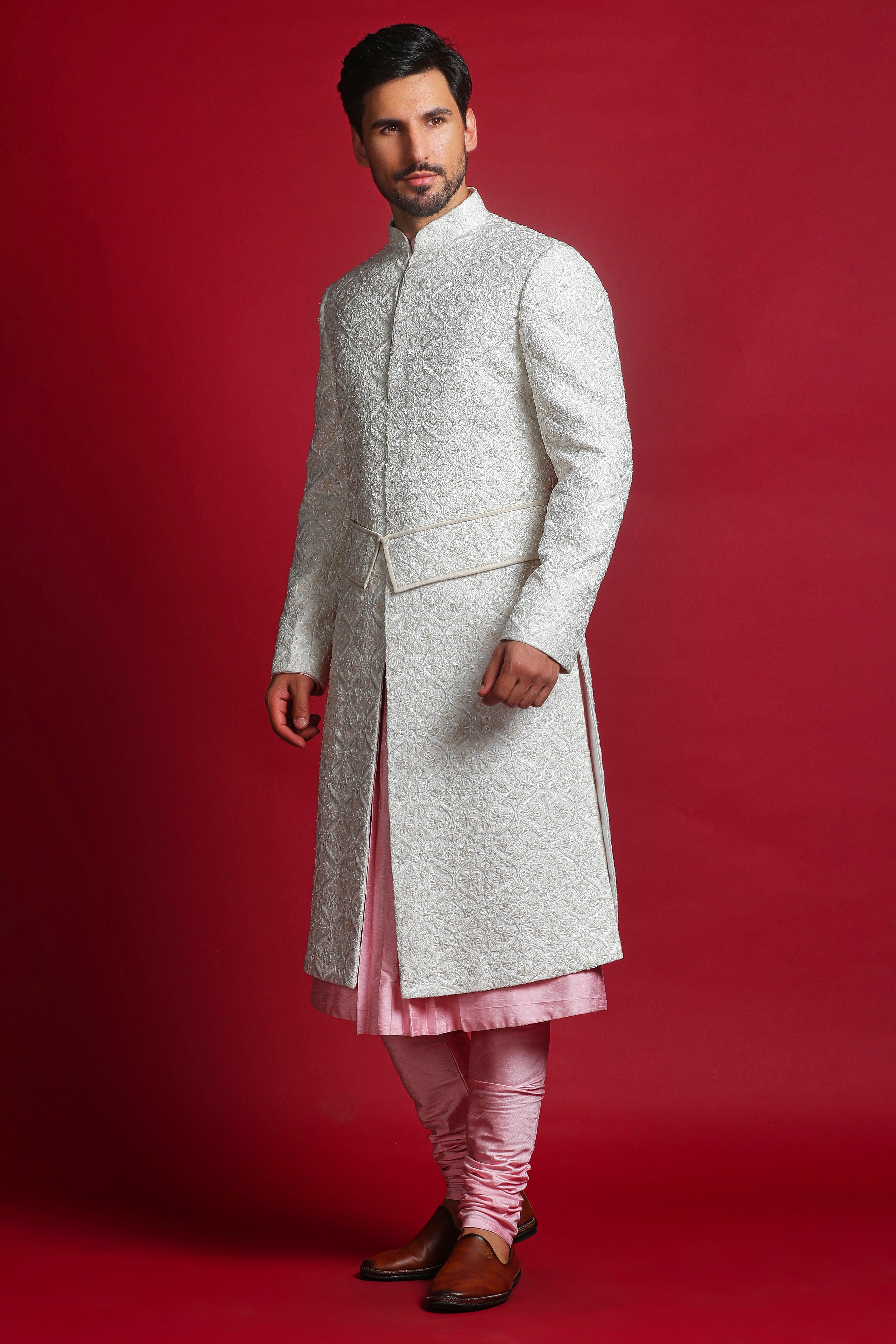 Includes: Sherwani, Kurta, Churidar, Stole, Belt